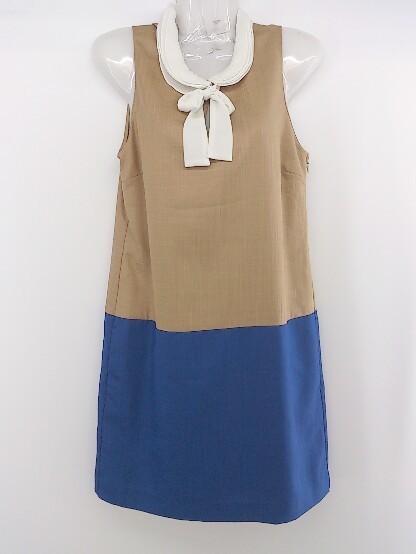 ◇ grammes nano universe ナノ ユニバース ノースリーブ 膝丈 ワンピース キャメル ブルー レディース P