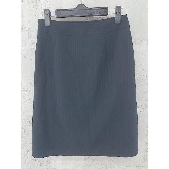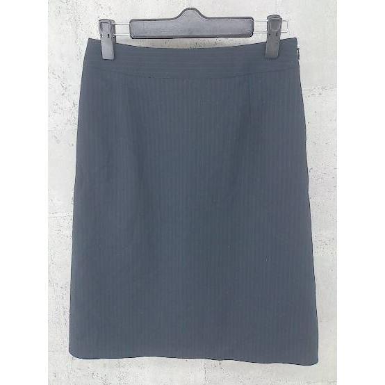 ◇ NEWYORKER ニューヨーカー ストライプ 膝下丈 タイト スカート 7 ネイビ- レディース