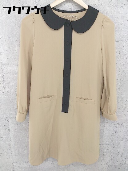 ◇ Ray BEAMS レイ ビームス ハーフボタン 丸襟 長袖 膝丈 ワンピース ブラウン ブラック レディース