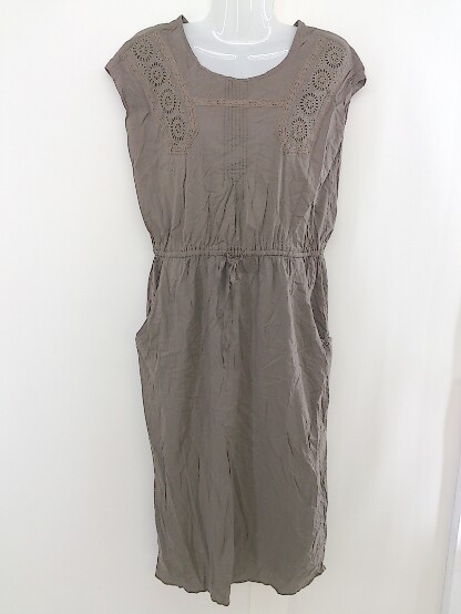 ◇ A day in the life UNITED ARROWS フレンチスリーブ 花柄 膝下丈 ワンピース グレージュ レディース