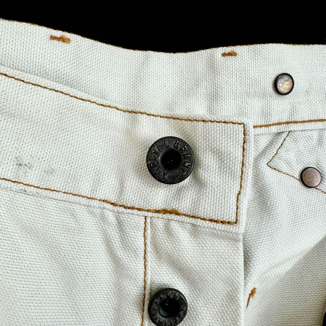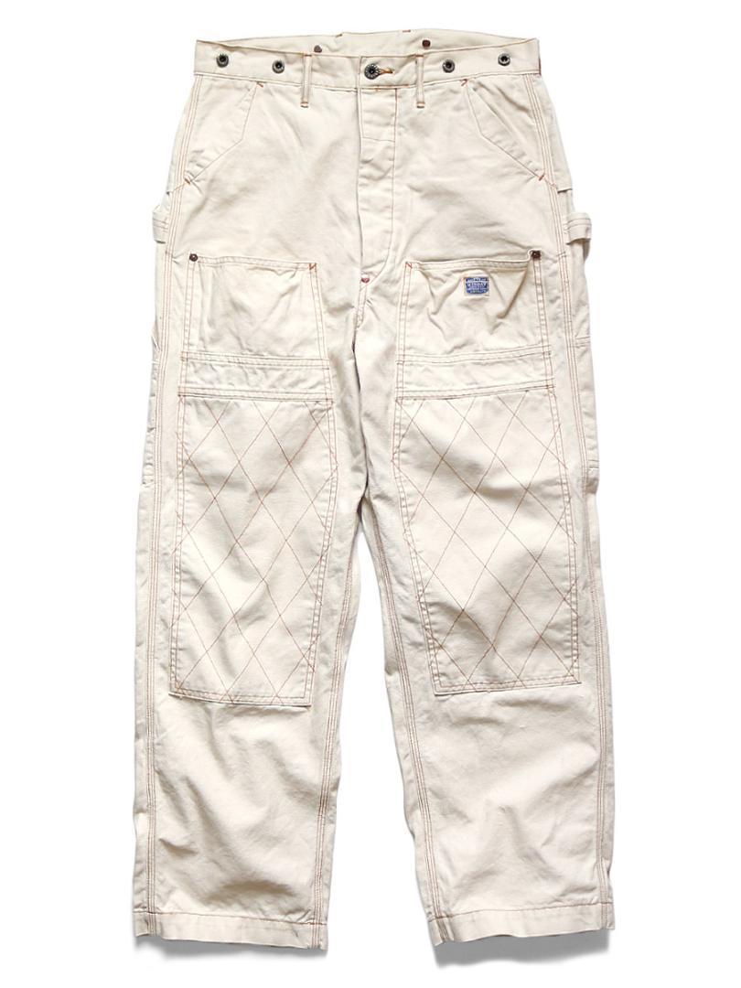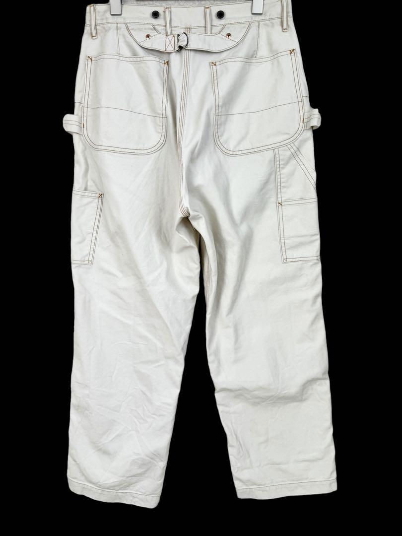 オーバーオールを日常に履きやすいパンツにアレンジした一点。オーバーオールの前当てをカットし、ウエストをぎゅっと絞ったようなシルエットのオーバーサイズパンツとなっています。前、横、後ろ様々な場所にポケットを取り付けています。