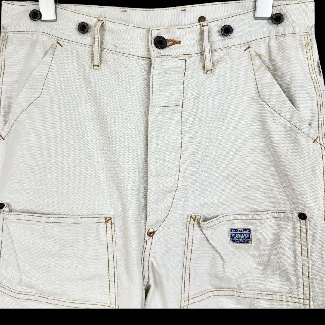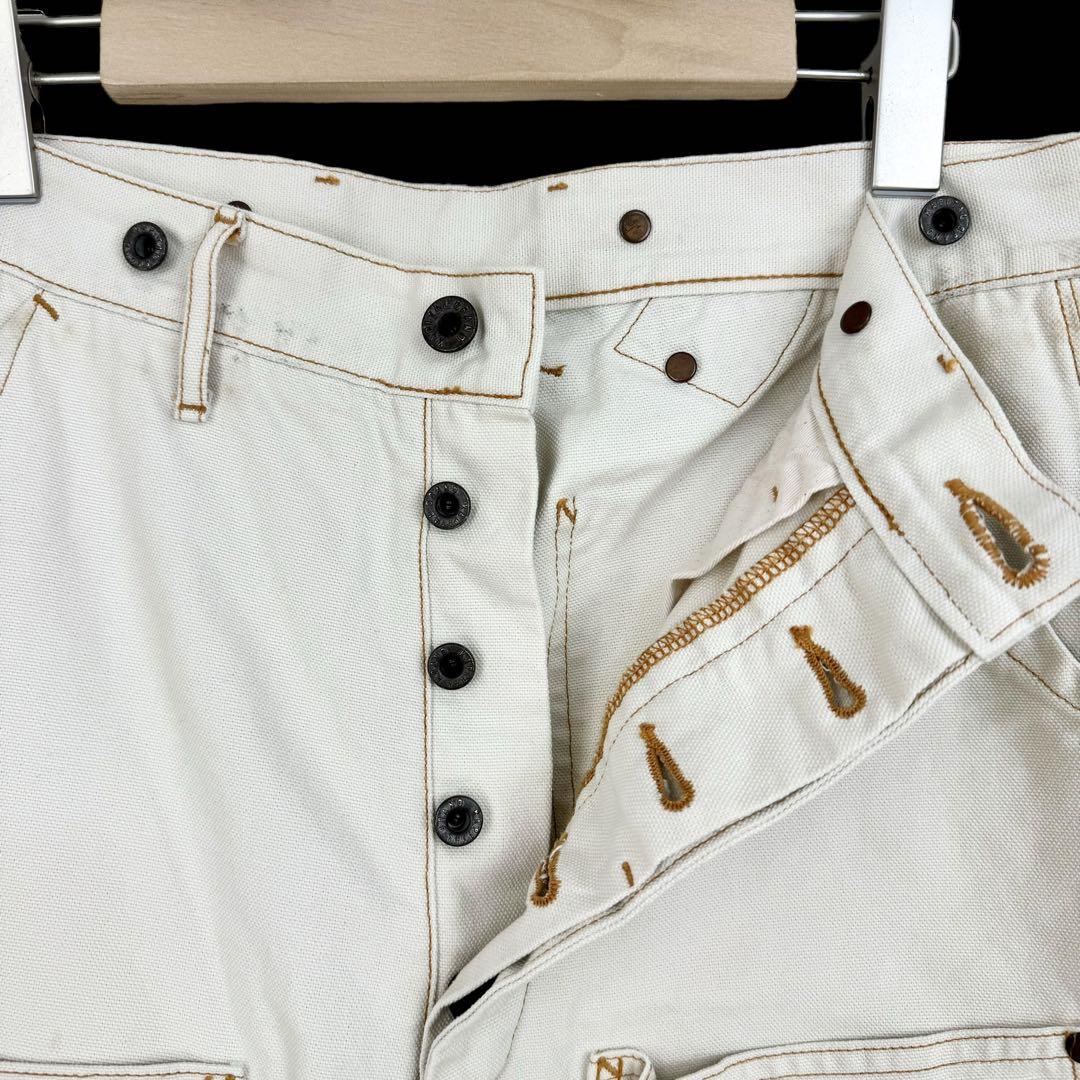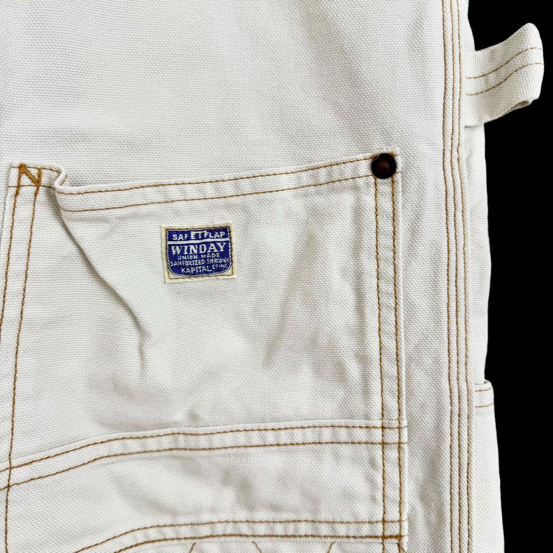 オーバーオールを日常に履きやすいパンツにアレンジした一点。オーバーオールの前当てをカットし、ウエストをぎゅっと絞ったようなシルエットのオーバーサイズパンツとなっています。前、横、後ろ様々な場所にポケットを取り付けています。