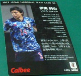 2022カルビー日本代表チップスカード23伊東純也(スタッド・ランス)KRCヘンク・柏レイソル・ヴァンフォーレ甲府 Jリーグ サッカートレカ