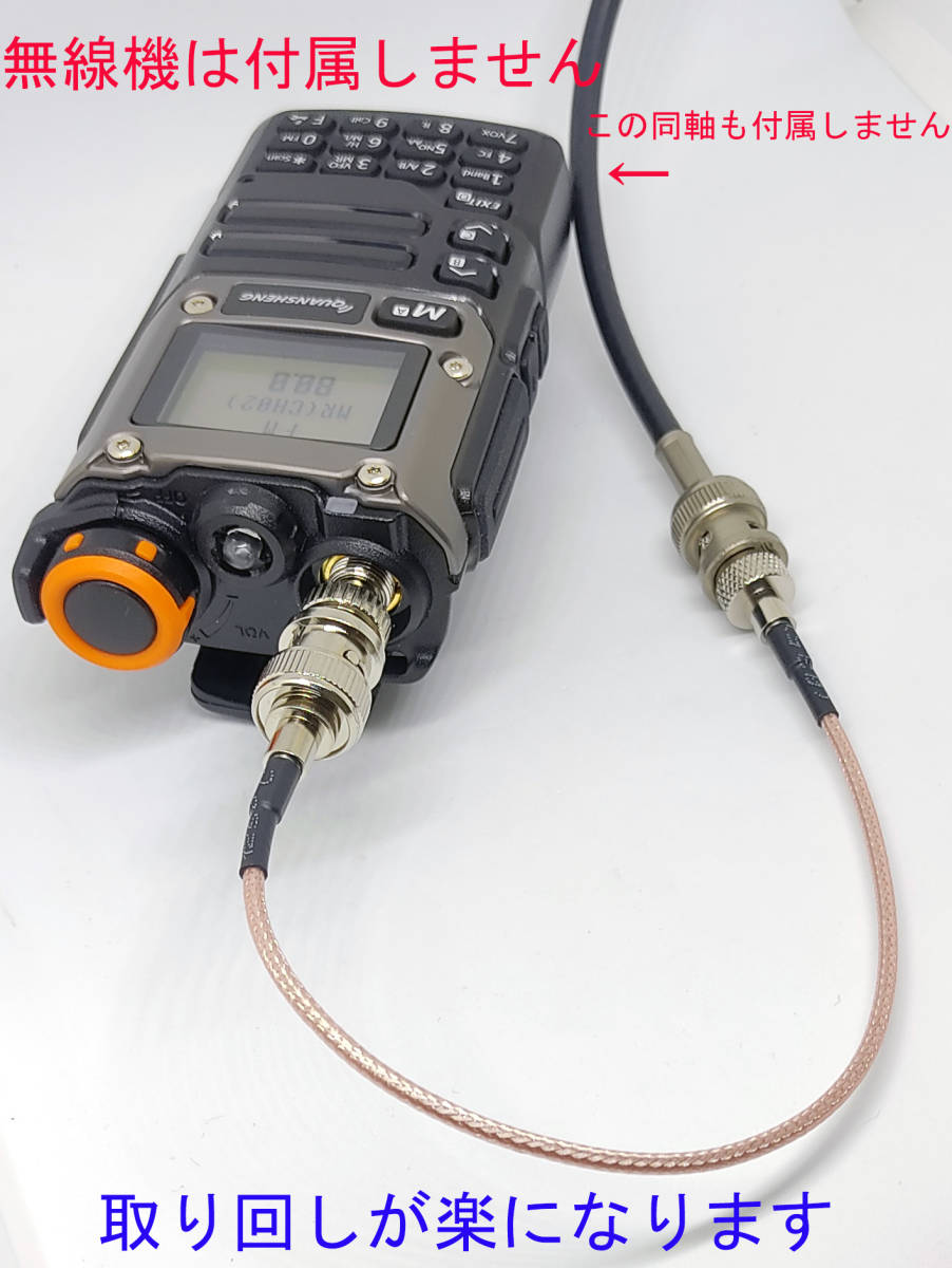 SMAJの変換ケーブルにすれば確かに見栄え省スペースにはなりますが無線機取り付け時コネクタ部分が貧弱でケーブルを回して取り付けなければならずケーブルを痛めやすいからです。一度SMAJ⇔BNCJの変換コネクタをつけることにより