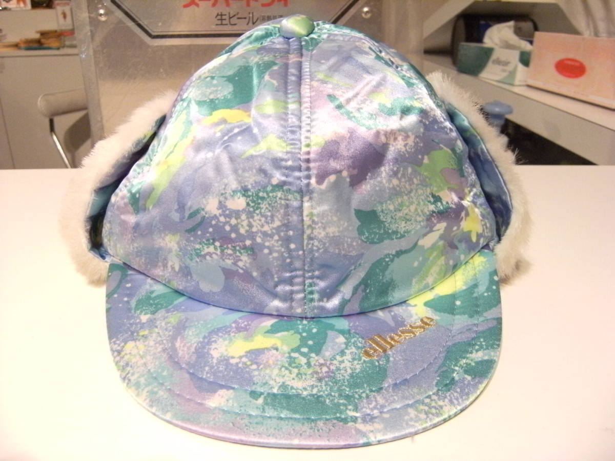 昭和レトロ★80年代★日本製★当時物 ellesse エレッセ 耳あて付き スキー 帽子 派手 キャップ★スノーボード アウトドア 防寒 釣り 登山