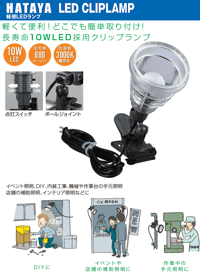 | 作業中の手元照明やDIYに、クリップで取り付ける便利なLEDライト | ||