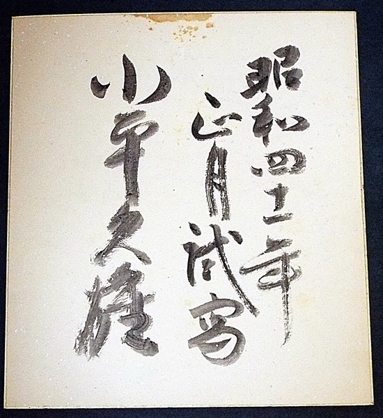 真作・肉筆色紙 ※政治家。明治43年栃木下野生。総理府総務長官・労働大臣・衆議院副議長。栃木県小山市名誉市民 平成10年没88歳。
