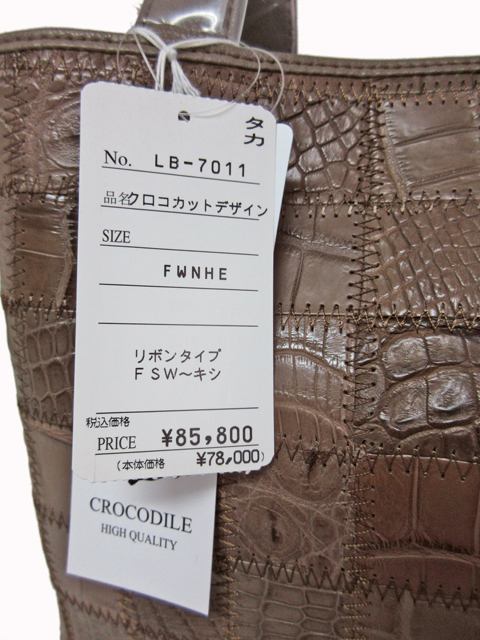 カットクロコダイル ハンドバック ミンク色 展示品 在庫処分 1649