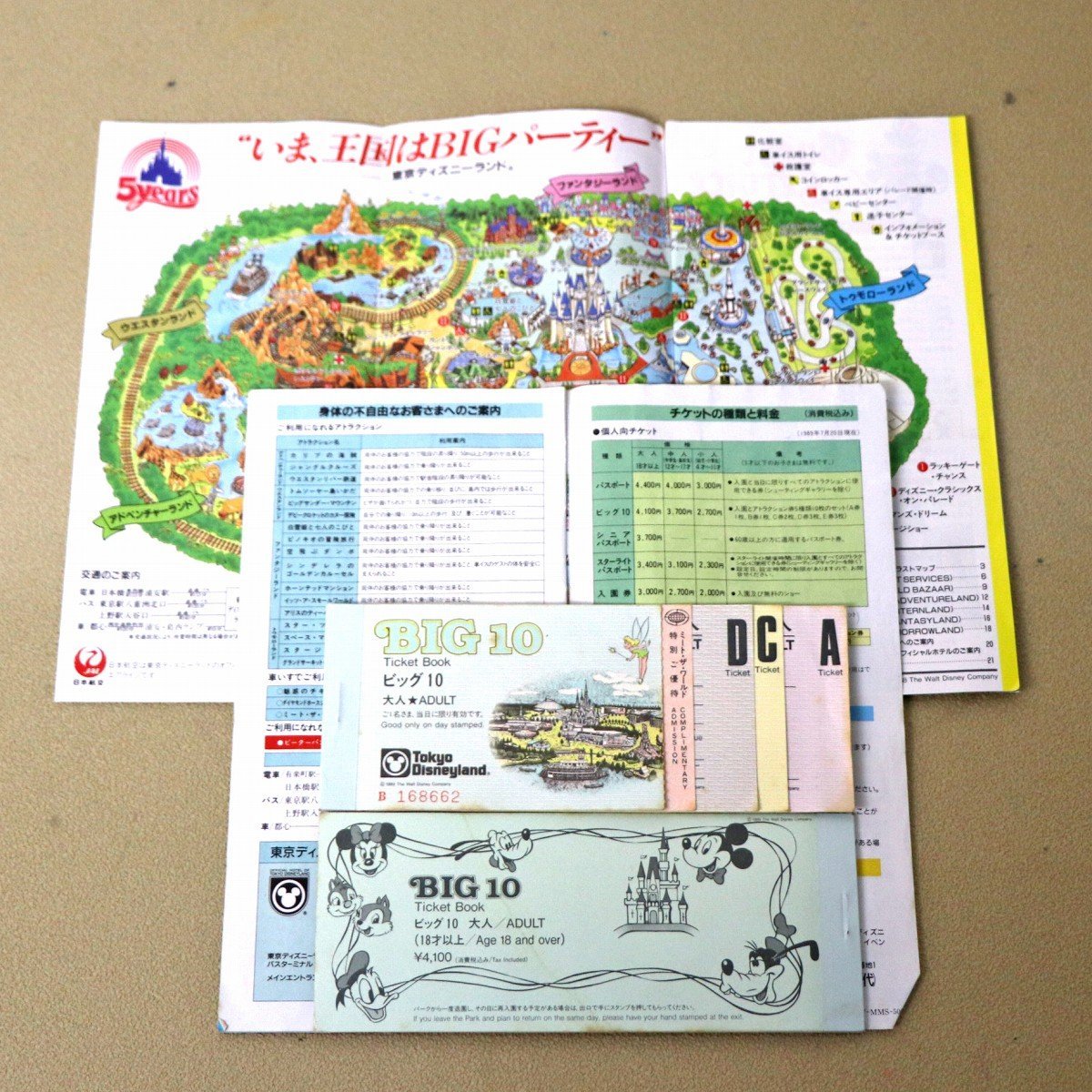 1989年春(平成元年)、5周年記念パンフ&チケット、チケットは2セットとも一部使用済、状態ランク:E、シワ、色アセ、ヨゴレあり