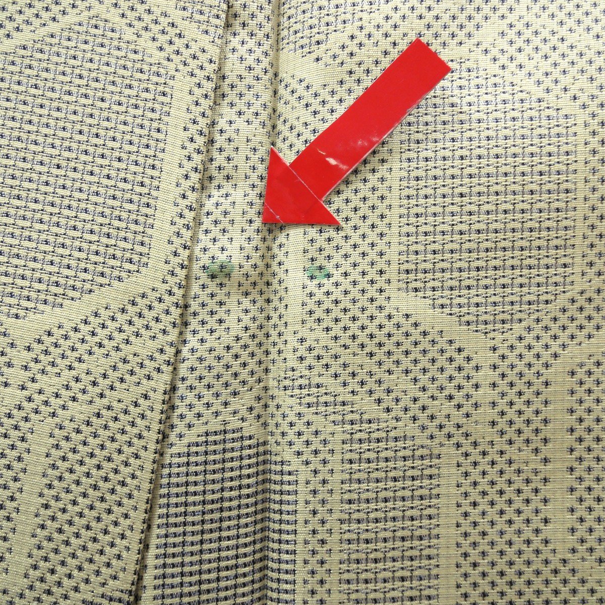 身丈:約158㎝、袖:約48㎝、裄:約64㎝、後幅:約29㎝、前幅:約23㎝、状態ランク:C、両袖つけ部分にシミ、緑青ヨゴレあり