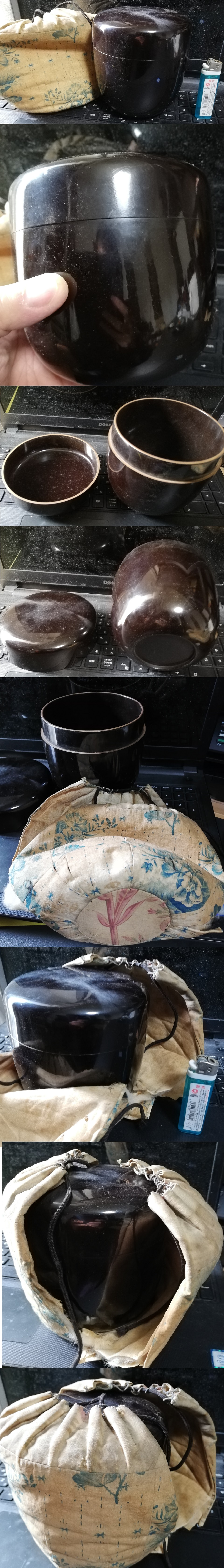 百年前 古黒漆 大棗 大きい茶入 共袋 茶道具唐木紫檀材 煎茶道具