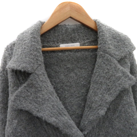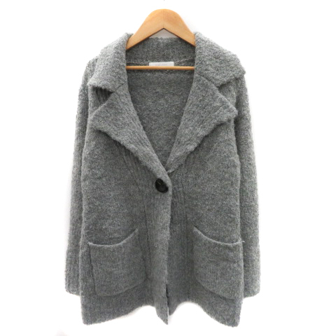 ドゥクラッセ DoCLASSE ニットジャケット ミドル丈 オープンカラー ウール混 アルパカ混 無地 オーバーサイズ S グレー /YK48 レディース