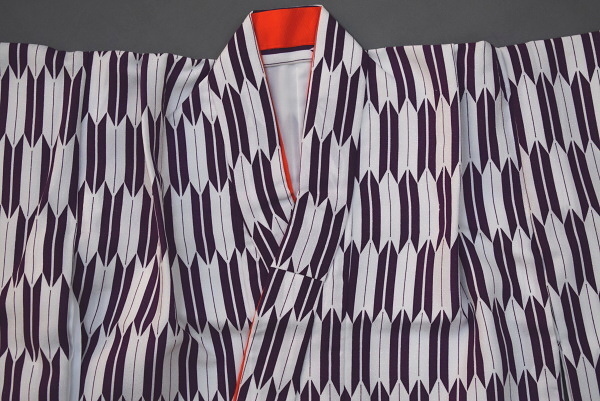 白・紫地 矢絣柄
