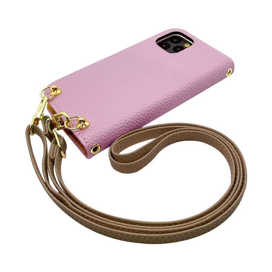 AQUOS sense7 SH-53C SHG10 スマホショルダー(手帳バイオレット×ストラップ:グレージュ)カバー 手帳 くすみカラー