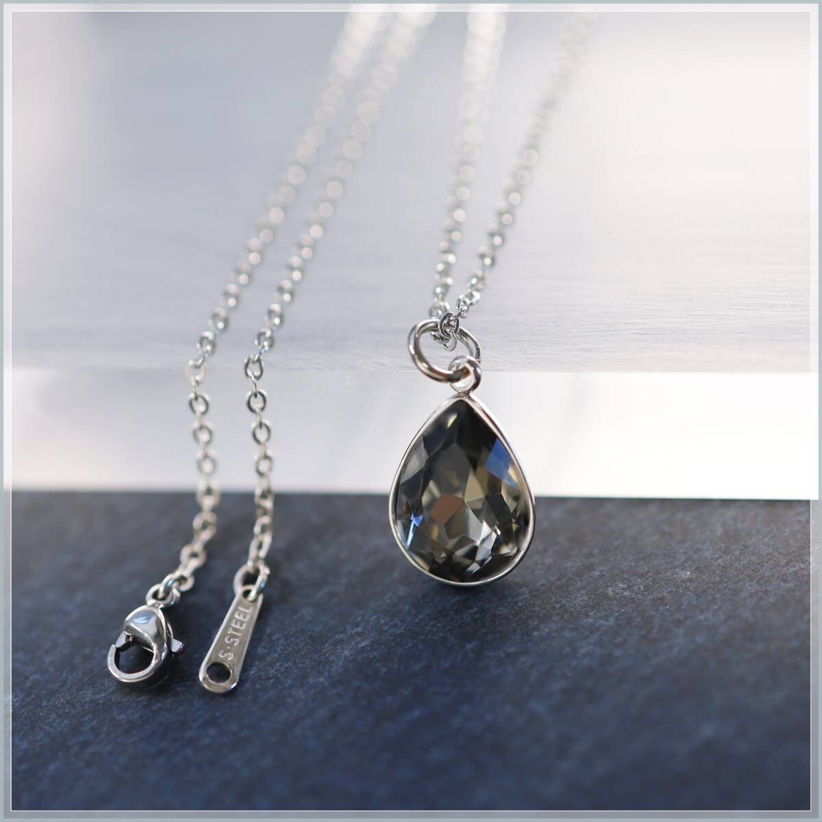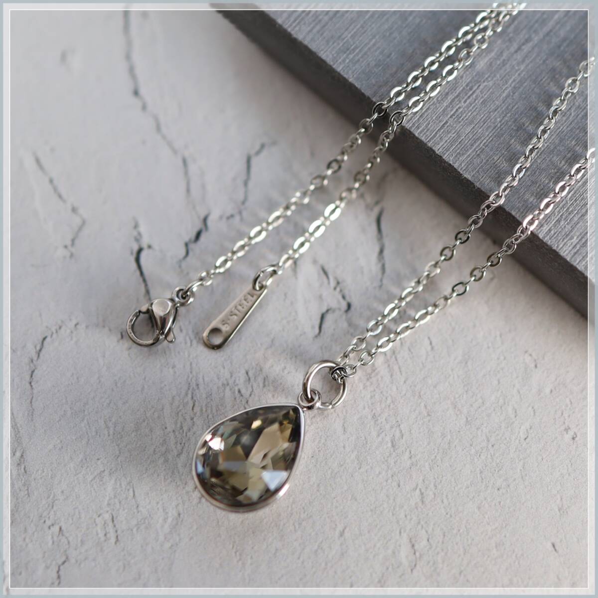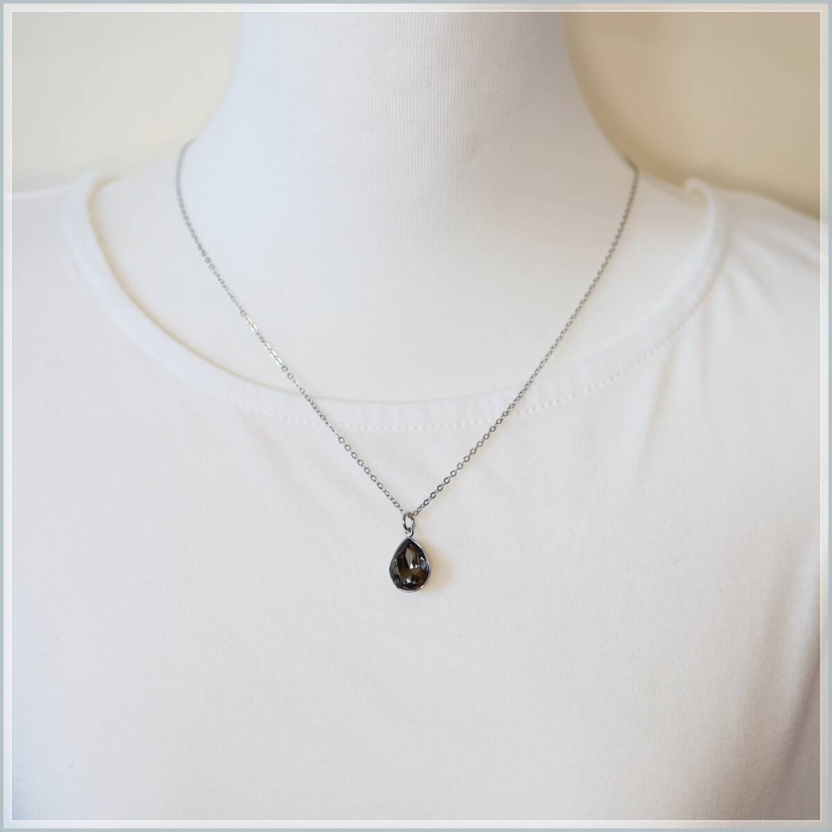 N7949/オールステンレス ブラックダイヤモンドカラー 人気色 雫 硝子のしずくネックレス モノトーン ドロップペンダント ステンレス製 上質