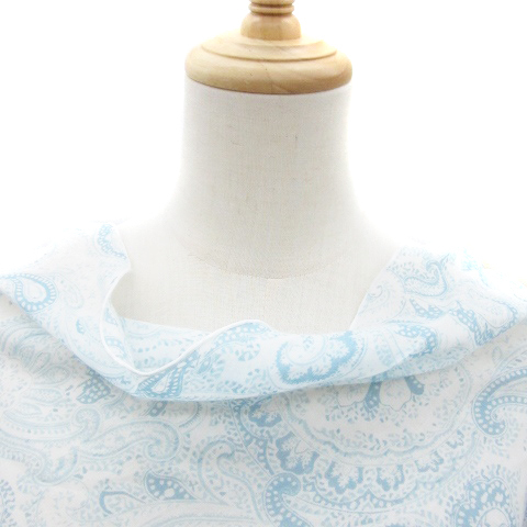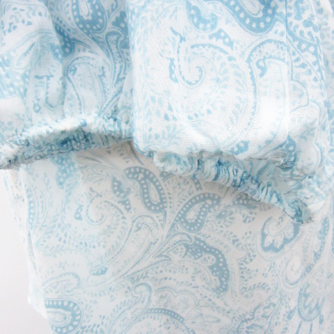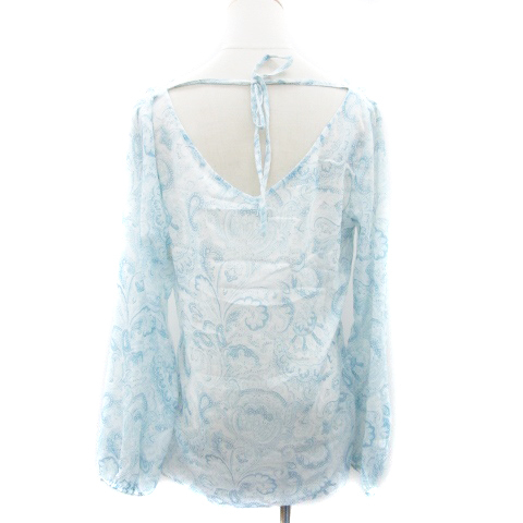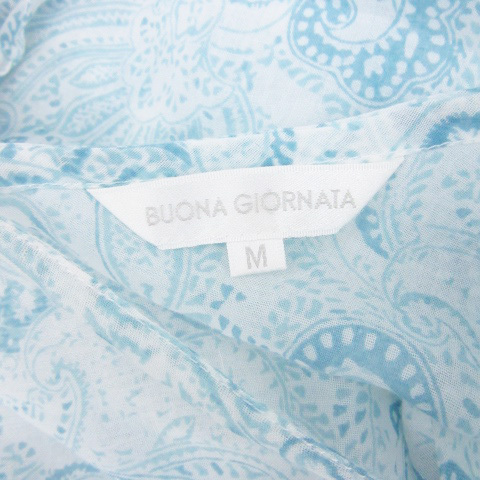 ボナジョルナータ BUONA GIORNATA ブラウス カットソー 長袖 ドレープネック バックシャン ペイズリー柄 M ライトブルー 水色 レディース