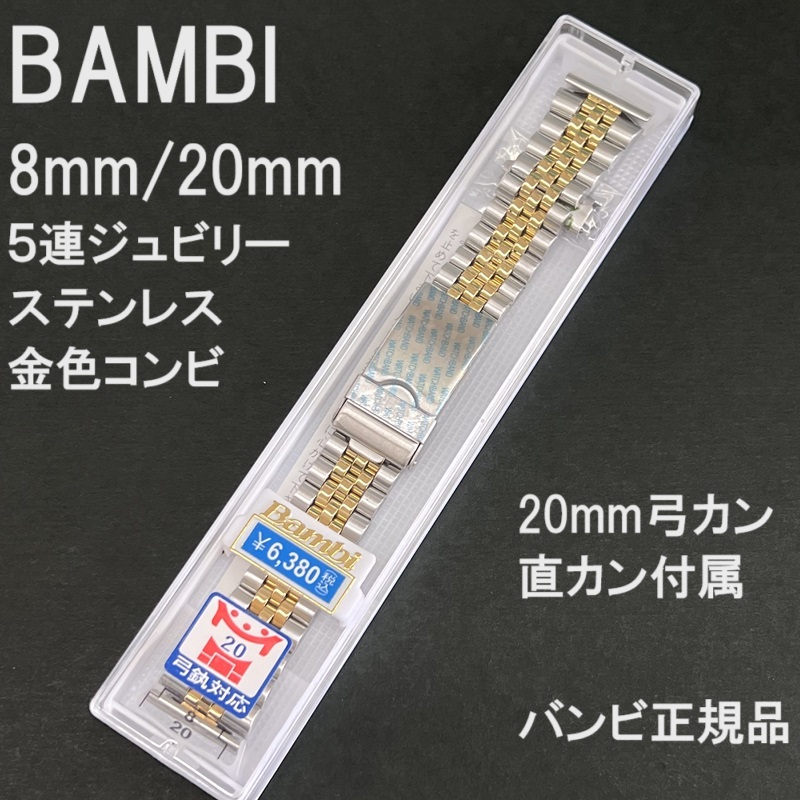 送料無料★特価 新品★BAMBI 時計ベルト メタルバンド 8mm [20mm弓カン 直カン付属] 5連 ジュビリー★バンビ正規品 定価税込6,380円