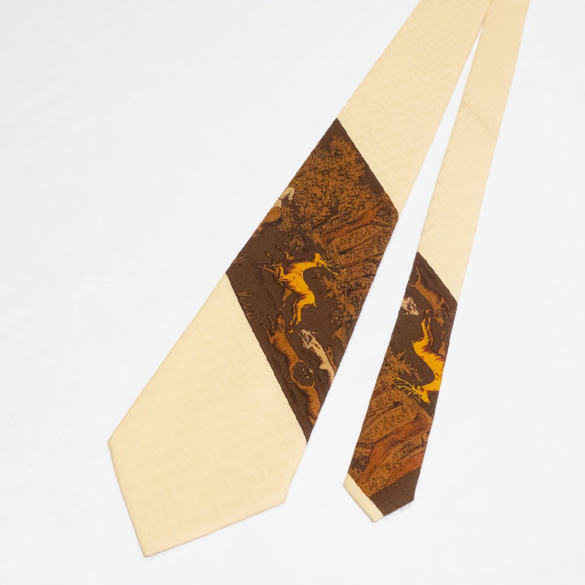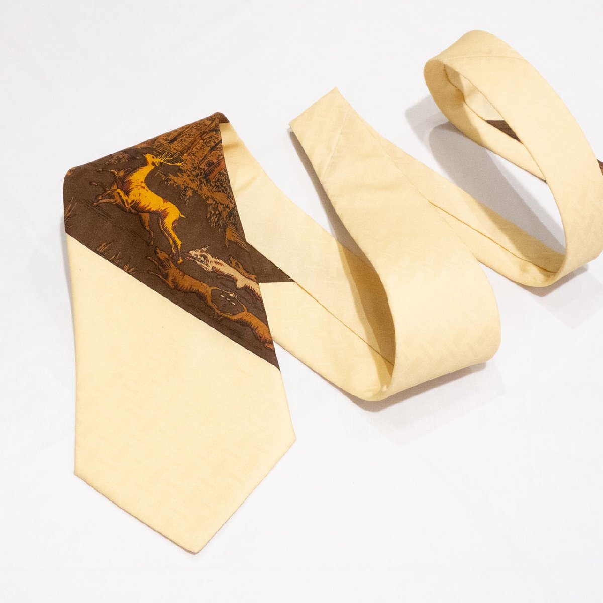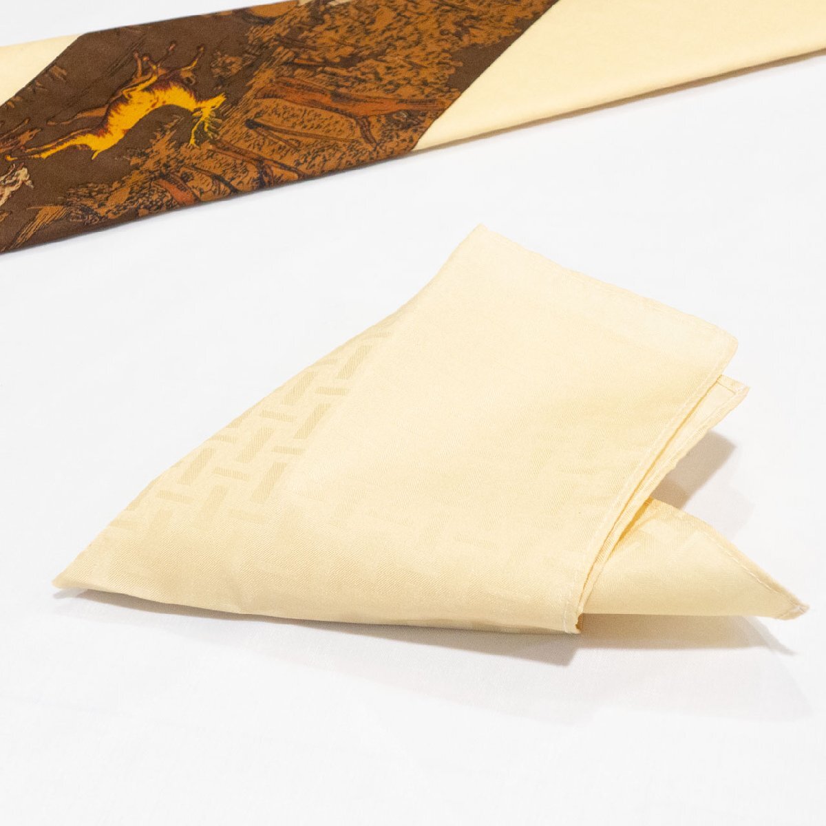 写真ご覧いただきありがとうございます。 当方オノの洋服と申します。 この出品は当社の通常商品ではなく 私オノ の趣味の部分でございます。遊びですからお気軽に入札御待ちしております。 デッドストックのネクタイでございます。 ネクタイと共地のポケットチーフが付いています。 昭和の頃に流行っていたものでご年配の方には懐かしい品でございます。 こちらは新品未使用。長期在庫品ですがダメージは見られず良コンディションでございます。 レトロな装いがお好きな方へワンポイントのアクセントにいかがでしょう? ■品番 29-2057 ■素材 ポリエステル100% ■寸法 長さ:130cm 大剣幅:10cm ポケットチーフ:23x23cm ■生産国 日本 | ||