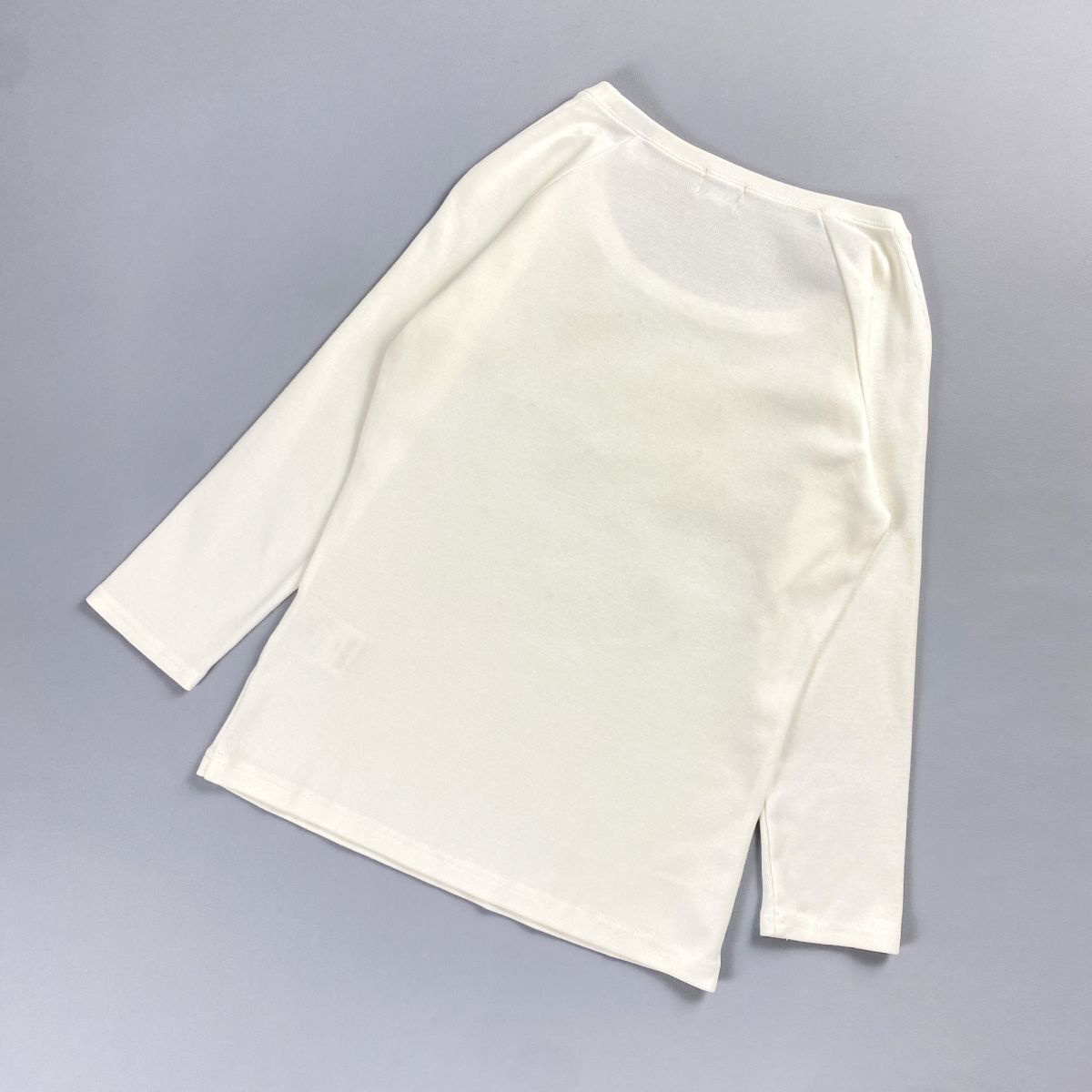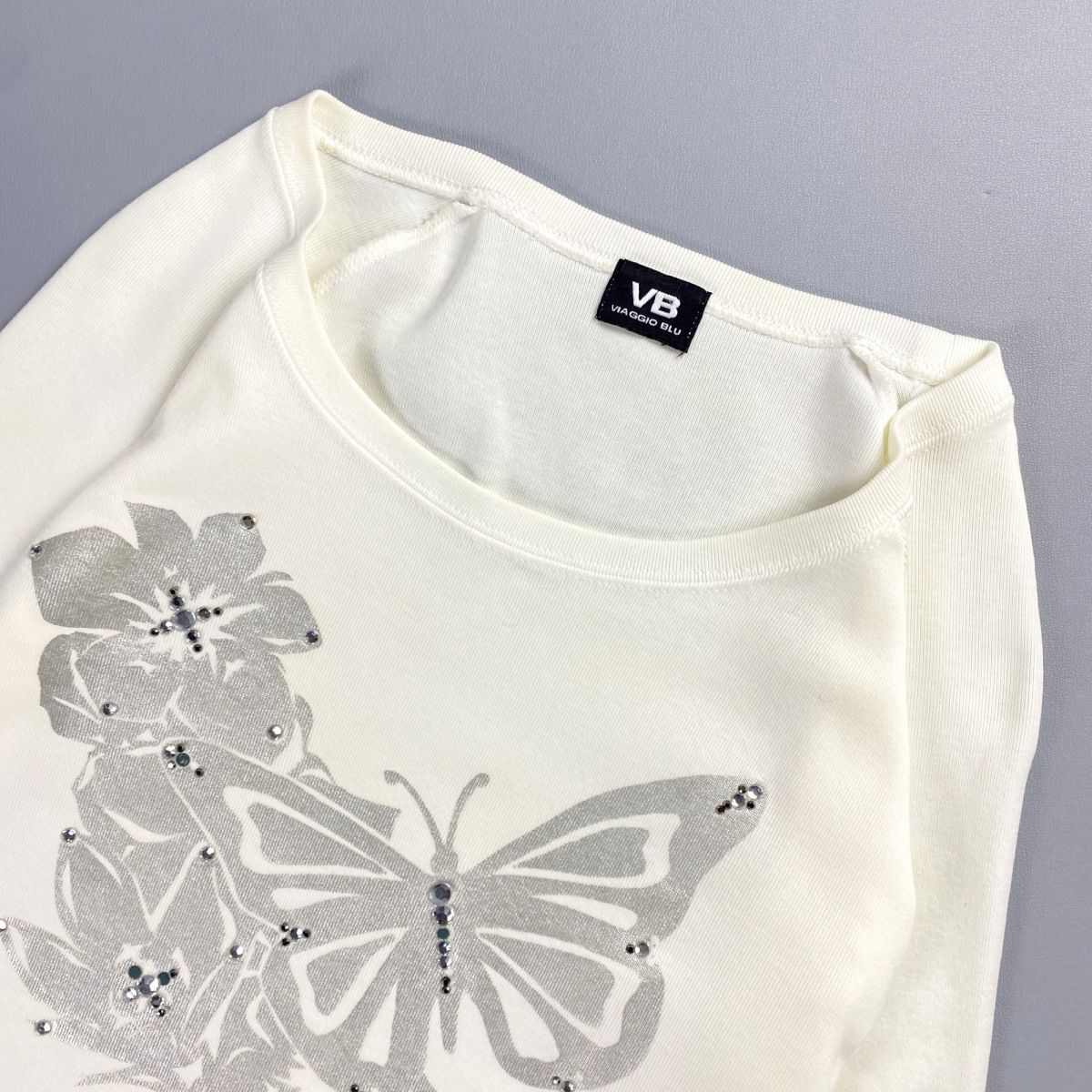 美品 Viaggio Blu ビアッジョブルー バタフライ 蝶 ラインストーン 七分袖カットソー トップス レディース 白 ホワイト サイズ2*NC32