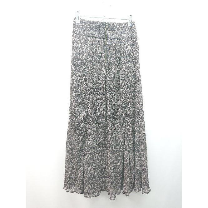 ◇ who's who Chico バックウエストゴム 花柄 ロング丈 フレア スカート 表記なし ブラック ベージュ レディース E