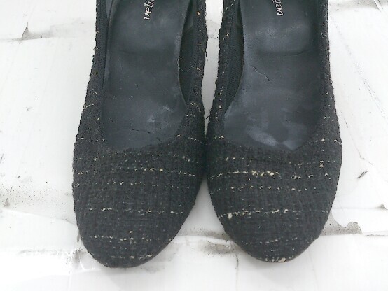 ◇ Velikoko ヴェリココ ツイード調 ヒール パンプス サイズ23 ブラック系 レディース P