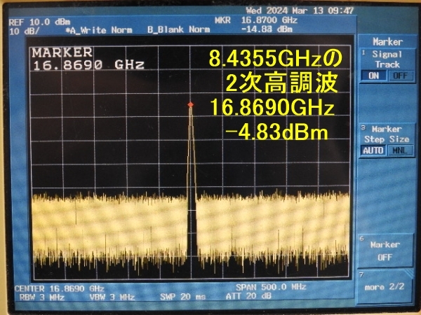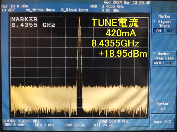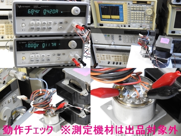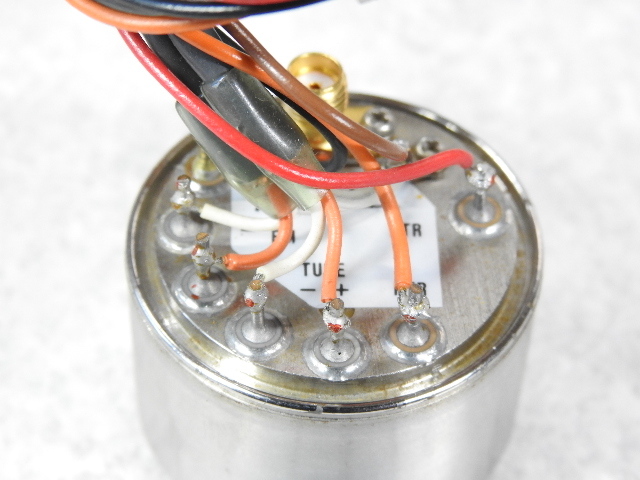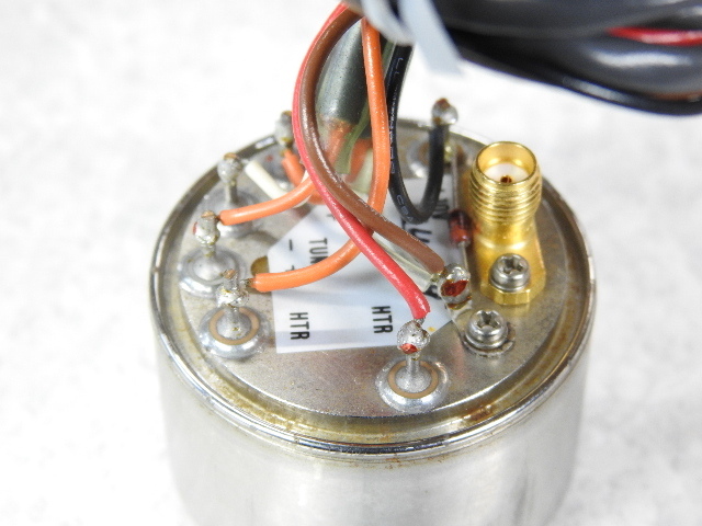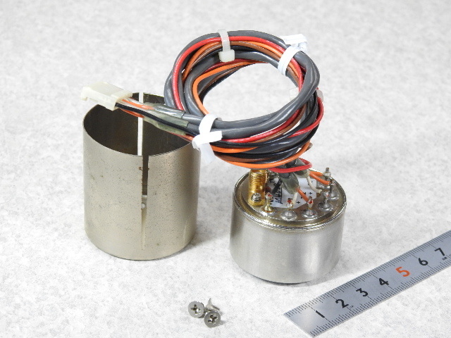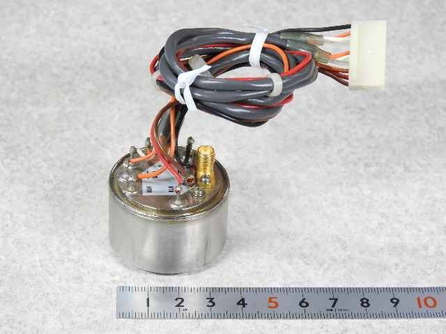 | 商品説明 | ※【HPマイクロ波】は検索用キーワードです。 ご覧頂きましてありがとうございます。 当方所蔵整理品です。 マイクロ波スペアナ(100Hz-8.5GHz)から取り外した、 YIG発振器(YTO/YIG TUNED OSCILLATOR) 2.0GHz-8.6GHz(実測) +16dBm~+19dBm(実測) +10V単電源 になります。 YIG発振器の大きさは、直径約40mm、高さ約25mm(放熱カバー45mm)です。 取り外した機器のスペアナ回路での発振仕様は、 BAND-0 / 2.5214GHz~4.5214GHz BAND-1(-) / 2.2214GHz~8.0214GHz BAND-1(+) / 5.9786GHz~7.9786GHz となっています。 従いましてYIG発振器の機器仕様発振範囲は、2.22GHz~8.02GHzになります。 これらの仕様は、機器のSERVICE MANUALより確認しました。 筐体にメーカー名、型番のラベルはありません。おそらく内製専用部品と思われます。 取り外した際は、放熱カバーにすっぽり入っていました。 放熱カバーは外してあります。(画像参照) 底面に固定ネジ3本があります。(画像参照) 放熱カバーも固定ネジ3本もお付けします。 電源は+10V単電源になります。使い勝手が良いと思います。 発振出力コネクタは、SMAメスです。(画像参照) YIG発振器上面にピン名称ラベルが貼ってありますのでピン配は明確ですが、 結線線材先端の10ピンコネクタの配列では、 ①茶線 GND ②赤線 HEATERコイル ③橙線 HEATERコイル ④シールド線GND ⑤白線 TUNEコイル(-) ⑥橙線 TUNEコイル(+) ⑦シールド線GND ⑧白線 FMコイル(-) ⑨橙線 FMコイル(+) ⑩黒線 +10V となります。 状態を確認する為に、下記のアマチュア的動作チェックをしました。 ※TUNEコイル電流をパラメータとした、発振周波数と発振出力レベルの、 大まかな確認になります。 ①テスター(HP E2377A)で各コイルの直流抵抗値を測定。 TUNEコイル:15.0Ω FMコイル:1.3Ω HEATERコイル:513Ω ※テスターリード抵抗値0.1Ωを含む ②HEATERコイルに関して HEATERコイル直流抵抗値が、温度で変化していることに気づきました。 室温状態時は、約513Ωですが、 下記動作チェック後の温まっている状態に測りますと、約2.5kΩありました。 温度上昇で約5倍に抵抗値が大きくなります。 定電圧で直流を流すと、温度上昇とともに、電流が減ってくる制御になると 思われます。 ③安定化DC電源(Agilent E3640A)より+10Vを印加。 消費電流値は、約126mA ※TUNEコイル電流で若干変動します。 ④発振出力端子に、アイソレーションとスペアナ保護を兼ねて10dBATTを挿入。 ※ヒロセ電機 AT-110(DC-18GHz) ⑤定電流電源(Keysight E3642A/CCモード)で、TUNEコイルを駆動。 電流方向はTUNE(+)からTUNE(-)へ。 ※FMコイル、HEATERコイルは無接続オープン ※定電流電源は一般的に、大きな誘導性負荷では発振する可能性があります。 今回のYIG発振器のTUNEコイルインダクタンス値はわかりませんが、 念の為に、定電流電源+/-間に、電解コンデンサ3300μFをつなげて 共振周波数を下げて、発振防止しています。 ⑥10dBATTとスペアナ(Advantest R3273)を短いセミフレキシブルケーブルで接続。 発振周波数と発振出力レベルを測定。 ※スペアナ設定は、Ref:+10dBm Span:500MHz MARKER SIG TRK機能を使い、常に画面中央にて自動Peak Serch TUNE電流 発振周波数 発振出力レベル 89mA 1.82GHz +7.5dBm 90mA 1.84GHz +10.6dBm 95mA 1.94GHz +15.0dBm 100mA 2.04GHz +17.6dBm 120mA 2.44GHz +19.5dBm 140mA 2.84GHz +18.8dBm 150mA 3.04GHz +18.4dBm 160mA 3.24GHz +17.7dBm 180mA 3.64GHz +16.1dBm 200mA 4.04GHz +15.7dBm 220mA 4.44GHz +15.6dBm 240mA 4.84GHz +16.3dBm 250mA 5.04GHz +16.8dBm 260mA 5.24GHz +16.9dBm 280mA 5.64GHz +16.8dBm 300mA 6.04GHz +17.0dBm 320mA 6.44GHz +16.8dBm 340mA 6.84GHz +16.9dBm 350mA 7.04GHz +17.1dBm 360mA 7.24GHz +17.4dBm 380mA 7.64GHz +17.7dBm 400mA 8.04GHz +18.8dBm 410mA 8.23GHz +18.9dBm 420mA 8.43GHz +18.8dBm 430mA 8.63GHz +18.1dBm 440mA 8.83GHz +15.9dBm 445mA 8.93GHz +10.1dBm 447mA 発振停止 駆動電流対発振周波数カーブは、ほぼ 1GHz/50mA になっています。 発振の下限は、2GHzですが、発振の上限は、8.6GHzまでいけそうです。 ただ、HEATERは作動させていませんので、HEATERを使うと 状況は変わるかもしれません。 ⑦2次高調波の確認 TUNE電流420mA時(8.4350GHz)の2次高調波を確認しました。 TUNE電流420mA 基本波 8.4355GHz +18.95dBm 2次高調波 16.8690GHz -4.83dBm ⇒ -23.8dBc 5GHz~8.6GHzをスイープ発振させれば、 2次高調波10GHz~17.2GHzのスイープ信号が得られます。 2次高調波を取り出すには、18GHzYTFを同期スイープさせるか、 WR-62(P-Band/12.4GHz~18GHz/カットオフ周波数9.488GHz)導波管を、 HPFとして用いることが考えられます。 マイクロ波デバイスはとてもデリケートです。 取り扱いには充分ご配慮下さい。(衝撃、振動、静電気等) ※測定機材は校正していませんので、精度を保証するものではありません。 あくまでもアマチュアレベル参考値です。 ※測定機材は出品対象ではありません。 取り外し品で経年変化に伴う、傷、汚れ、クスミがあります。 詳細は確認していませんので、現状優先とします。 状態は画像にてご確認下さい。 あくまでも中古現状渡しジャンク品となります。 ノークレーム&ノーリターンでお願いします。 ※画像中のスケール、測定機材は出品対象ではありません。 小型のYIG発振器で、+10V単電源ですので、使いやすいと思いま
