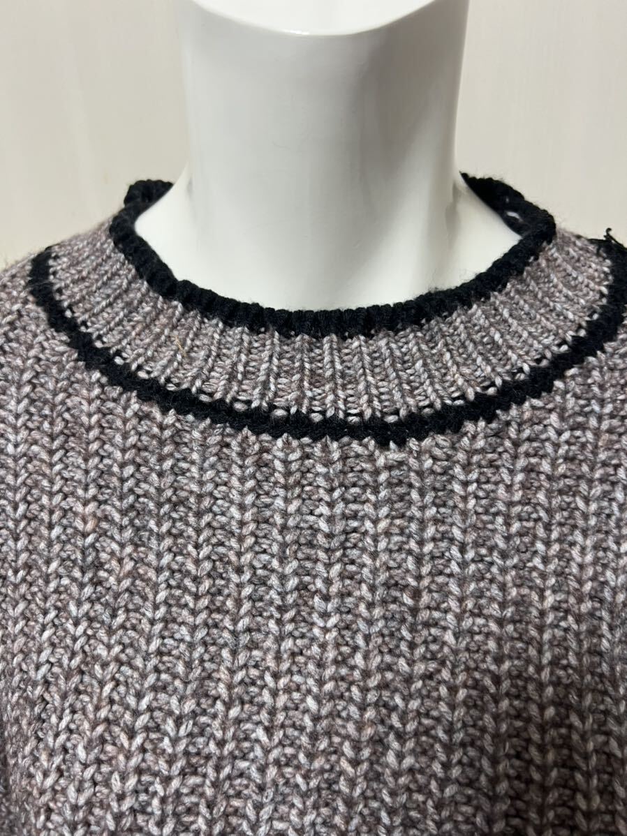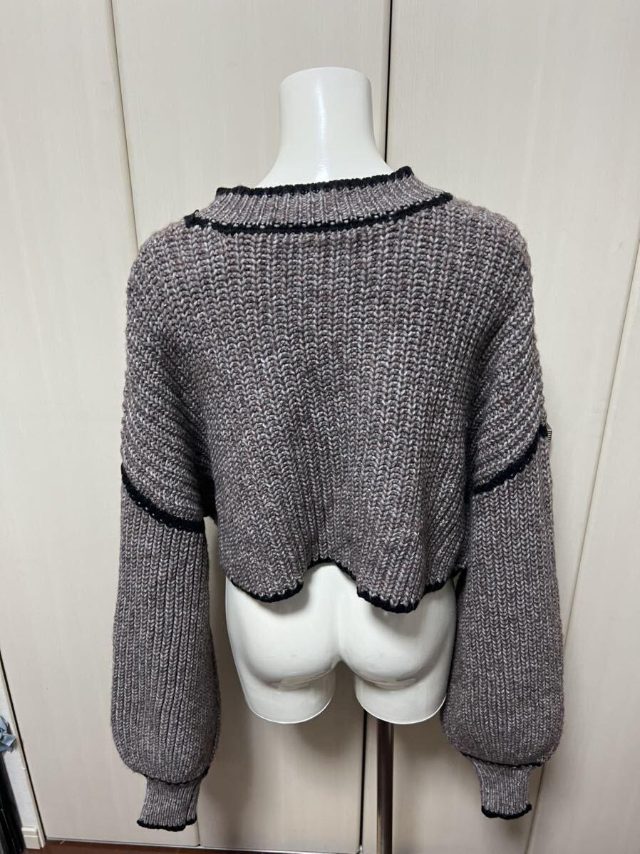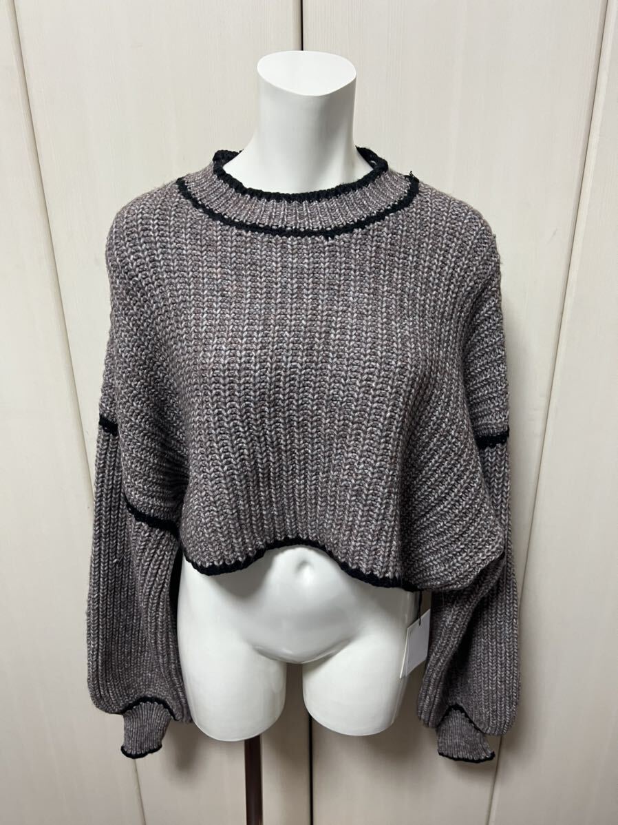 新品 グレイル 配色ラインショート丈ニットトップス[kz215] モカ フリーサイズ