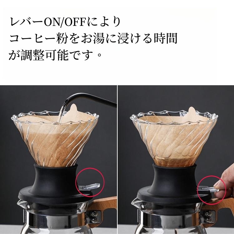 コーヒードリッパー:ドリッパーON/OFFがついております。ON/OFFによりコーヒー粉をお湯に浸ける時間が調整可能です。