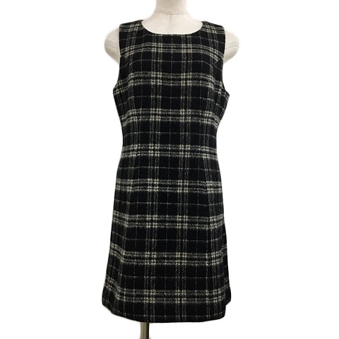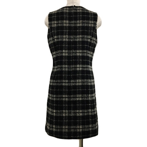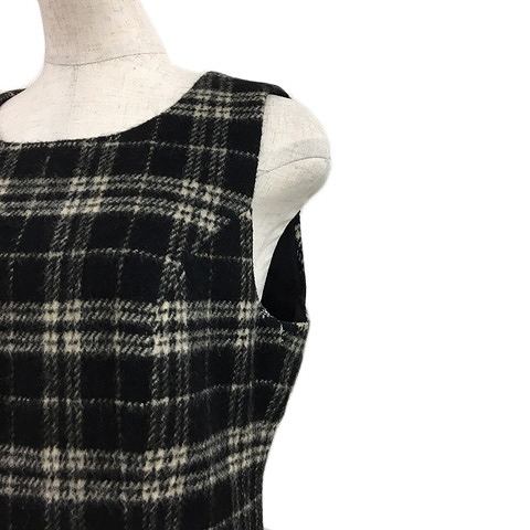 エムケー ミッシェルクラン ワンピース Aライン ミニ 起毛 チェック ウール ノースリーブ 38 黒 白 ブラック ホワイト レディース