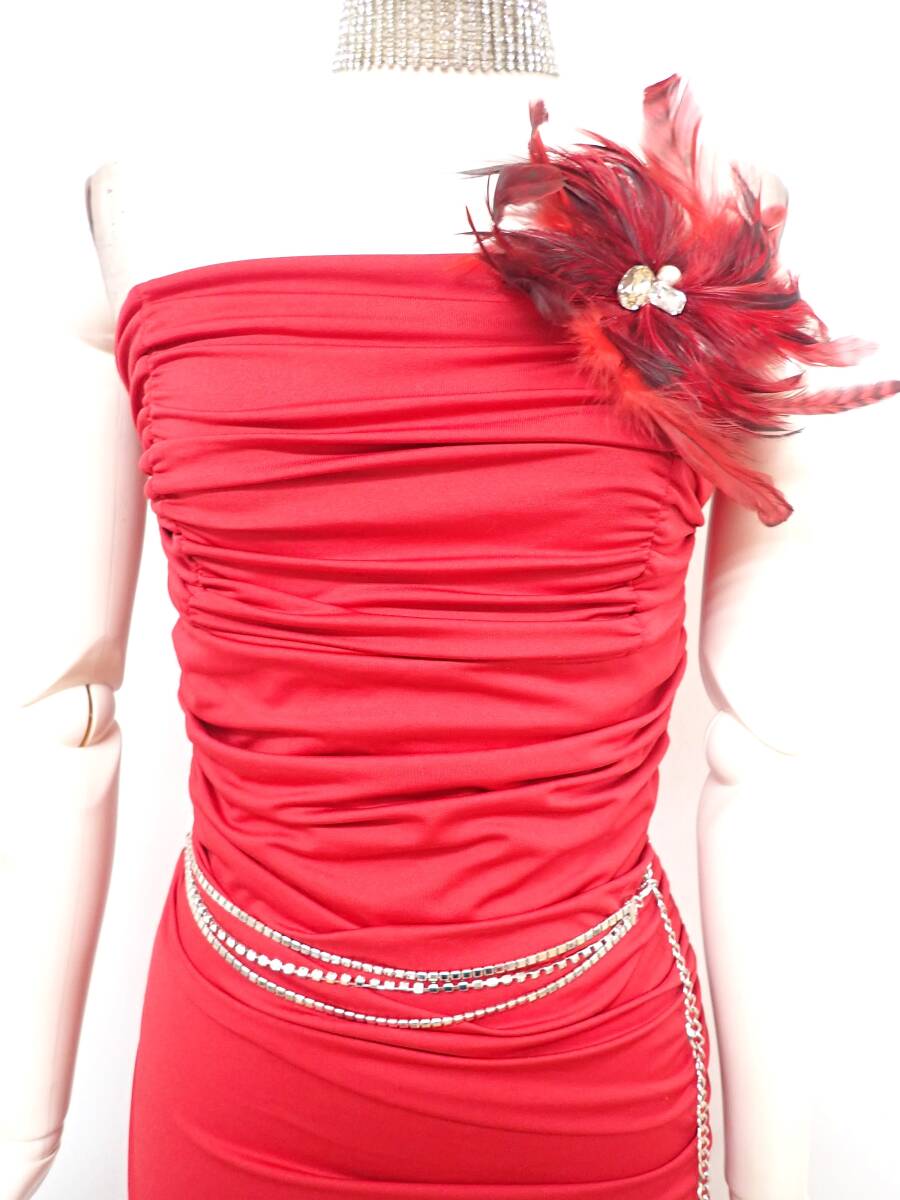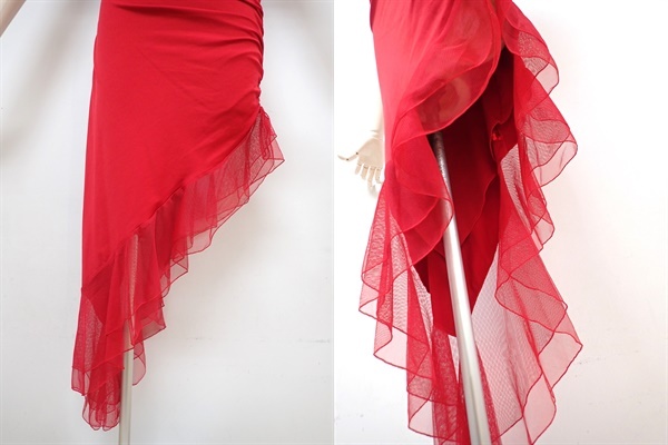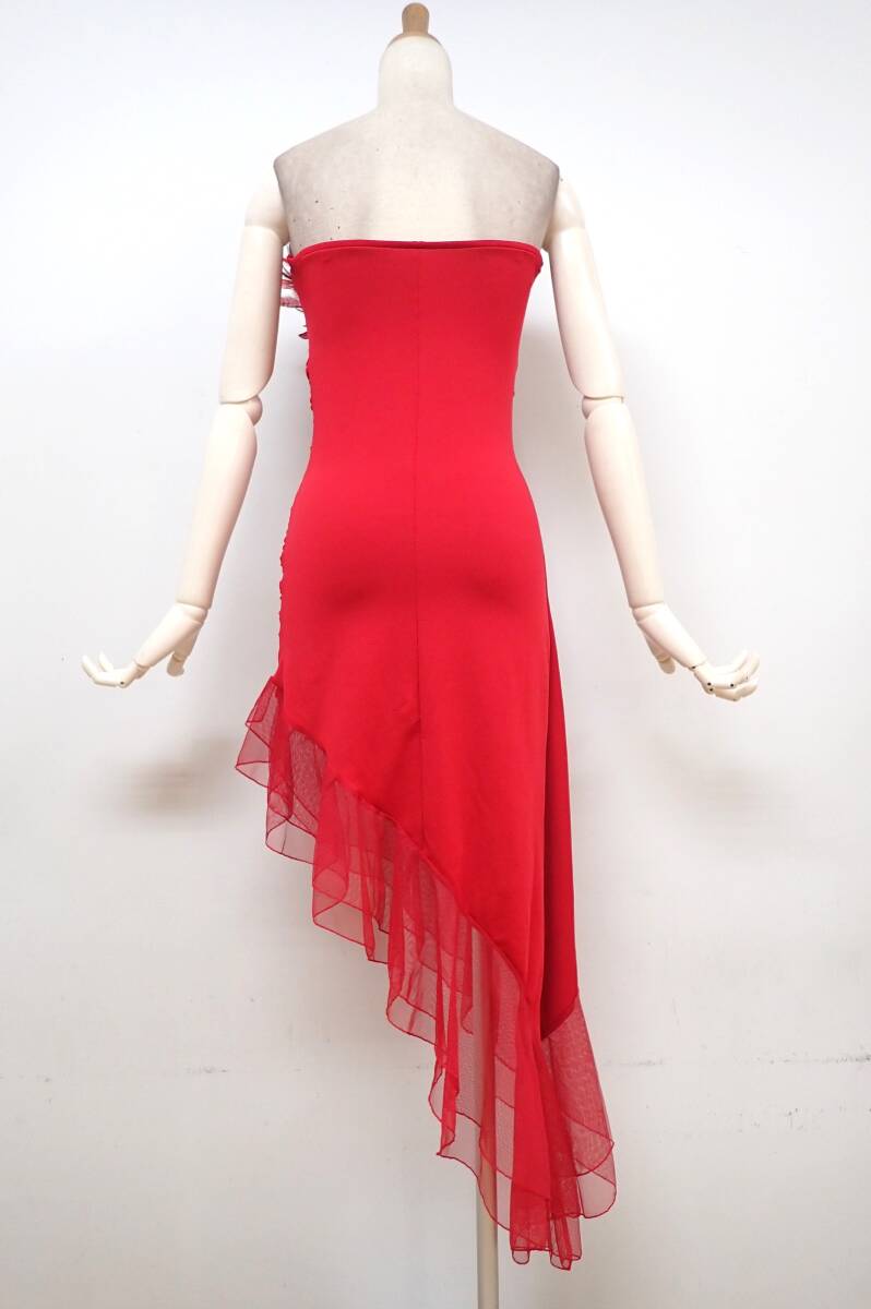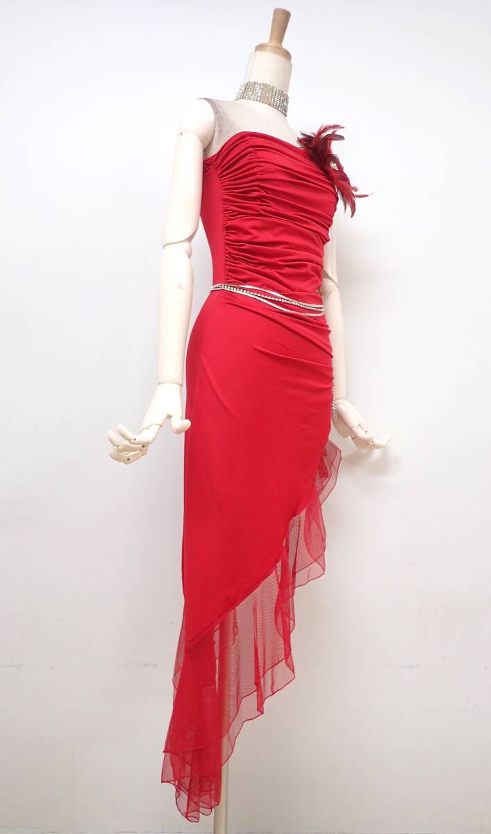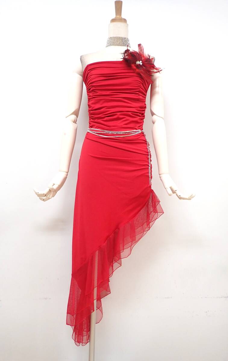 ⑧24C19即決★SM対応/赤/ギャザー/アシンメトリー/ストラップレスワンピ/ラテンドレス☆社交ダンス/ラテン/パーティー
