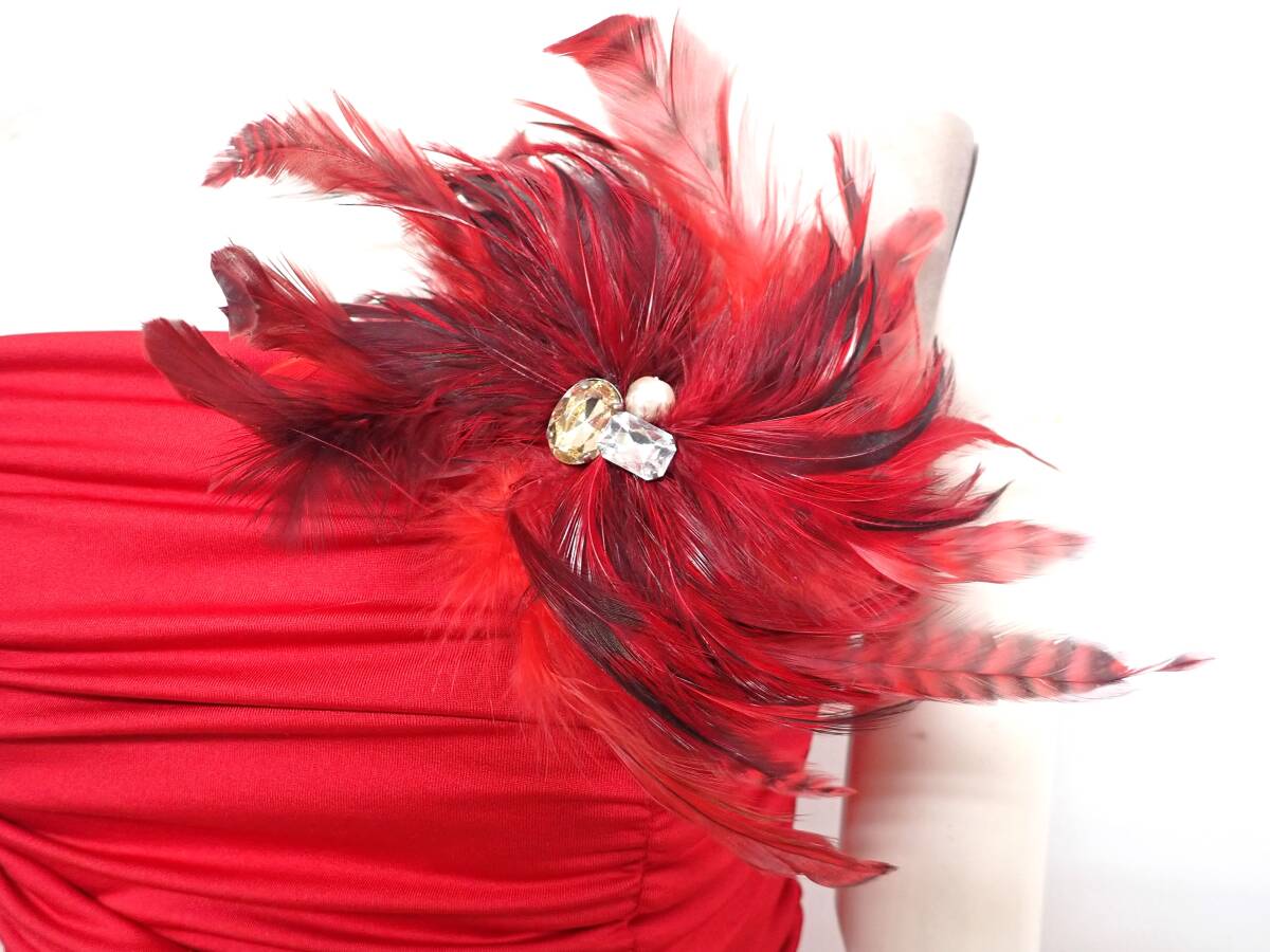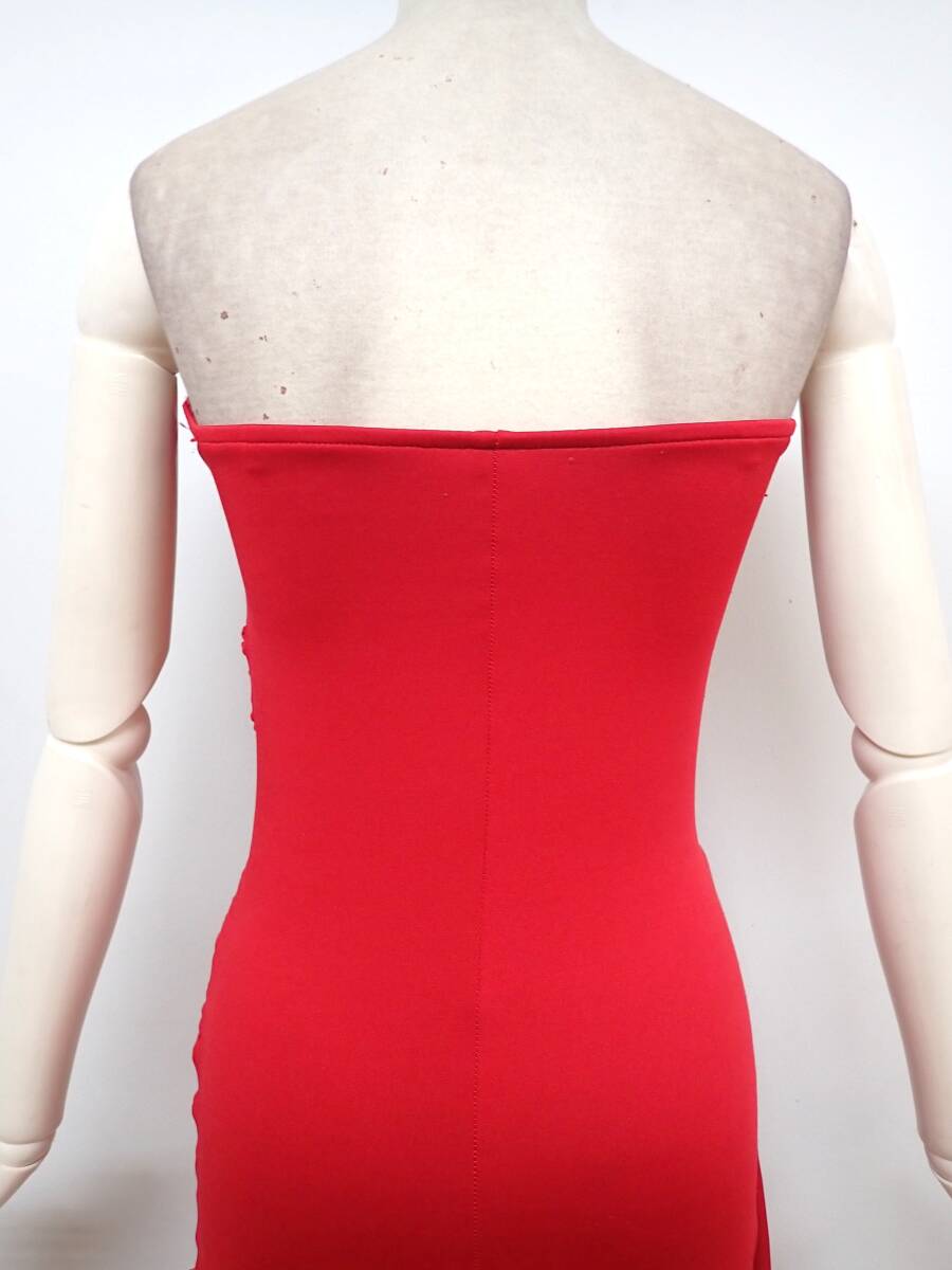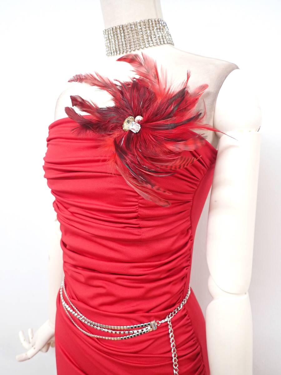 ⑧24C19即決★SM対応/赤/ギャザー/アシンメトリー/ストラップレスワンピ/ラテンドレス☆社交ダンス/ラテン/パーティー