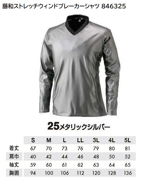 [ゆうパケット/1枚]◆藤和ストレッチウィンドブレーカーシャツ 846325【25メタリックシルバー・Sサイズ】定価7590円の品、即決1480円♪
