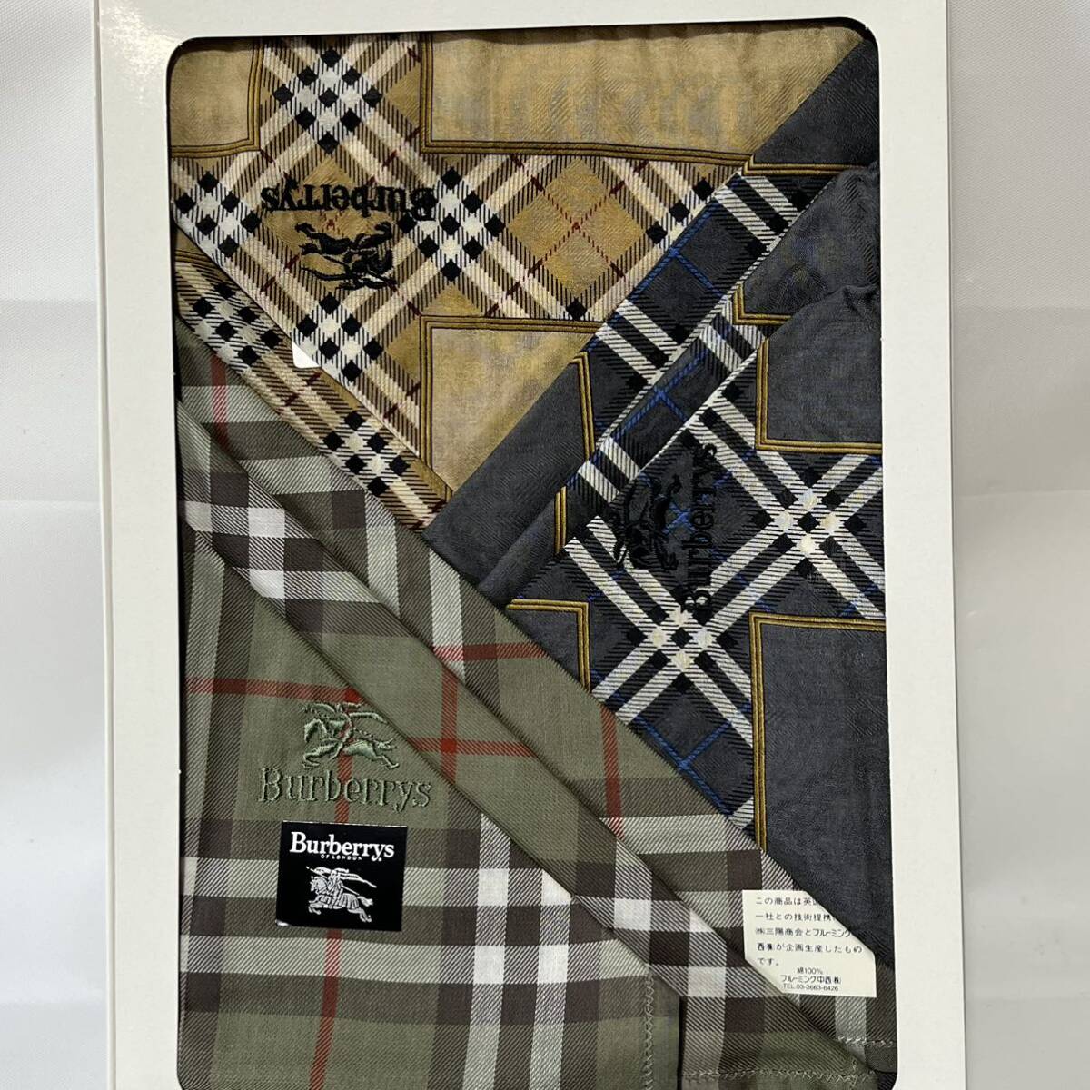 美品 BURBERRY オールドバーバリー ノバチェックハンカチタグ付き4枚 4色希少セット 西武百貨店