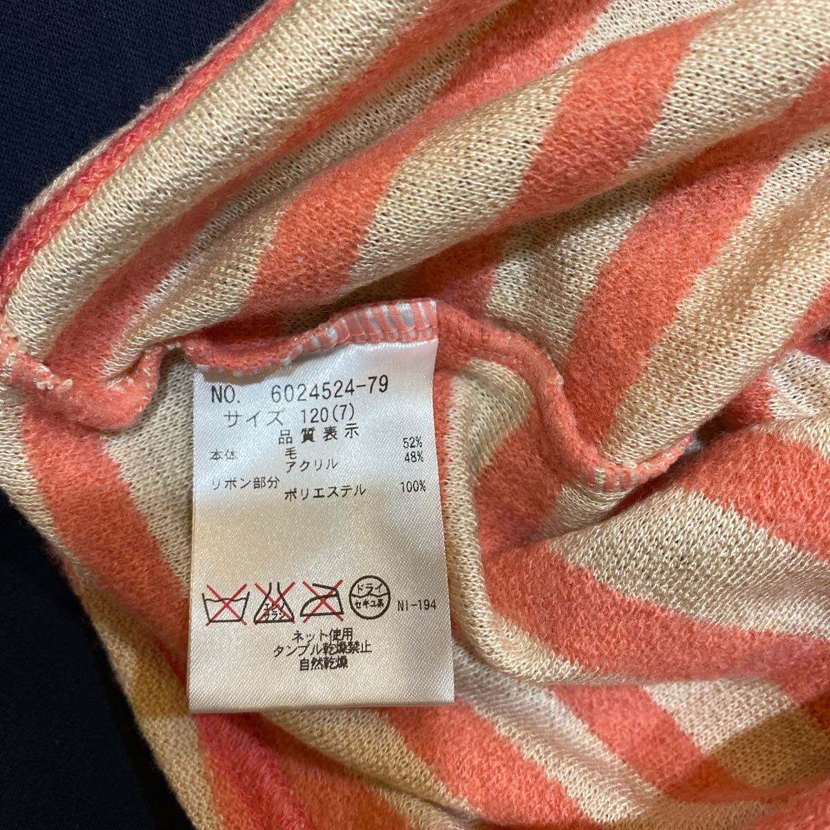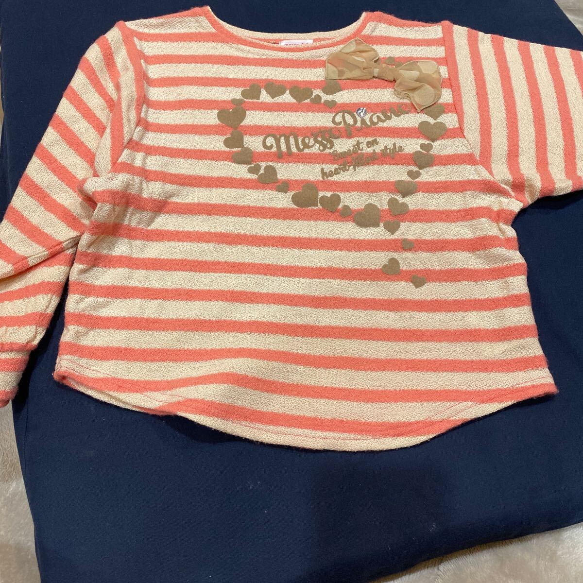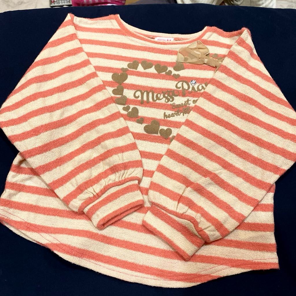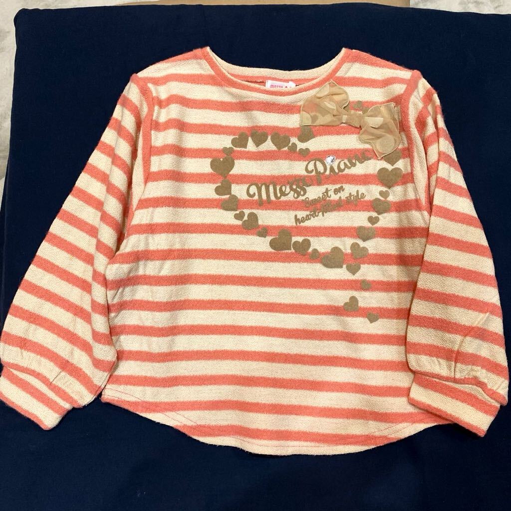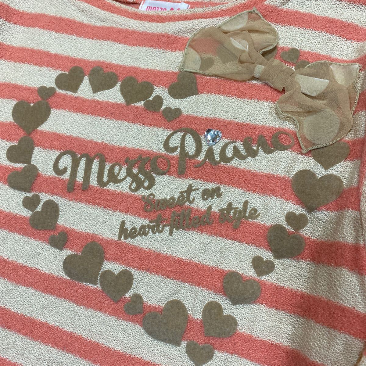 美品120メゾピアノmezzo piano長袖ニットソーボーダーロンT 長袖Tシャツ リボンキラキラ長袖カットソー