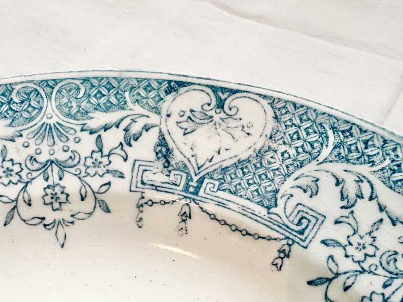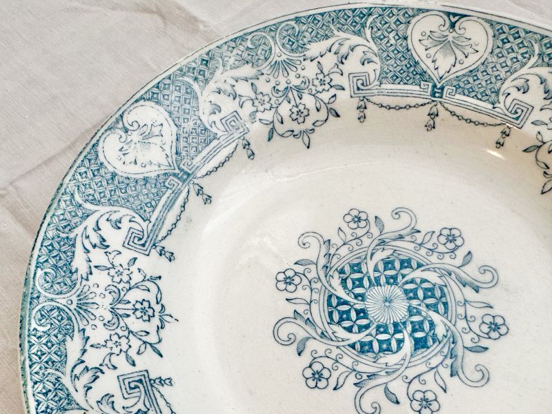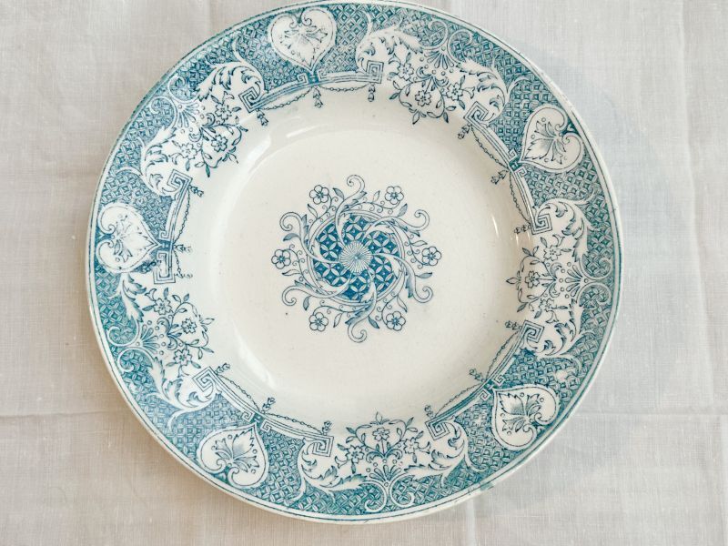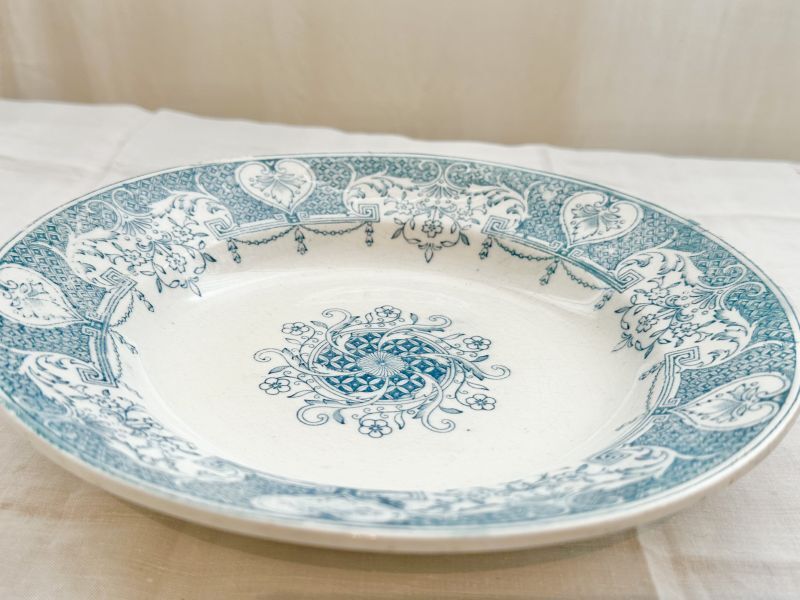 フランスで一目惚れしたお皿はスペインのものでした。 画像は少し明るめに写っていますが 淡いアンティークグリーンのとても素敵な色柄です。 全体的に若干貫入はあるもののコンディションは良好です! ◆買い付け国◆ フランス ◆年代◆ 19世紀 ◆サイズ◆ 直径=約22.5cm、深さ=約3.8cm |