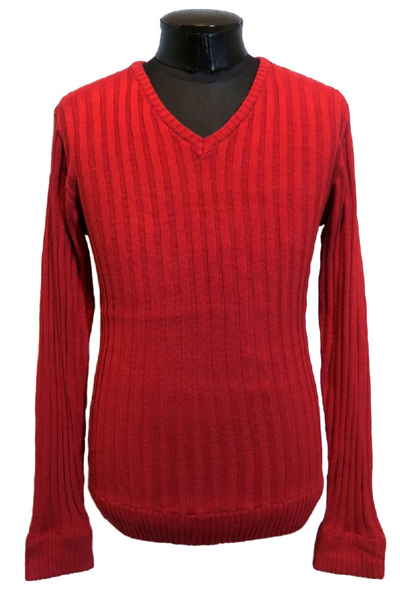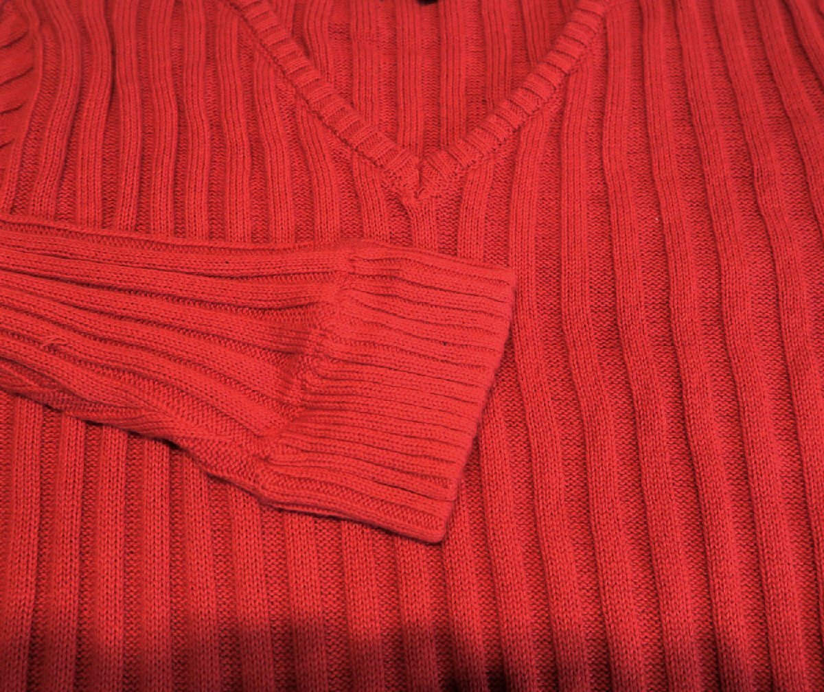 新品 XLサイズ Vネック 綿100% ニット 330010 RED 赤 レッド メンズ 針抜き リブニット タイトフィット セーター インナー 重ね着 モード