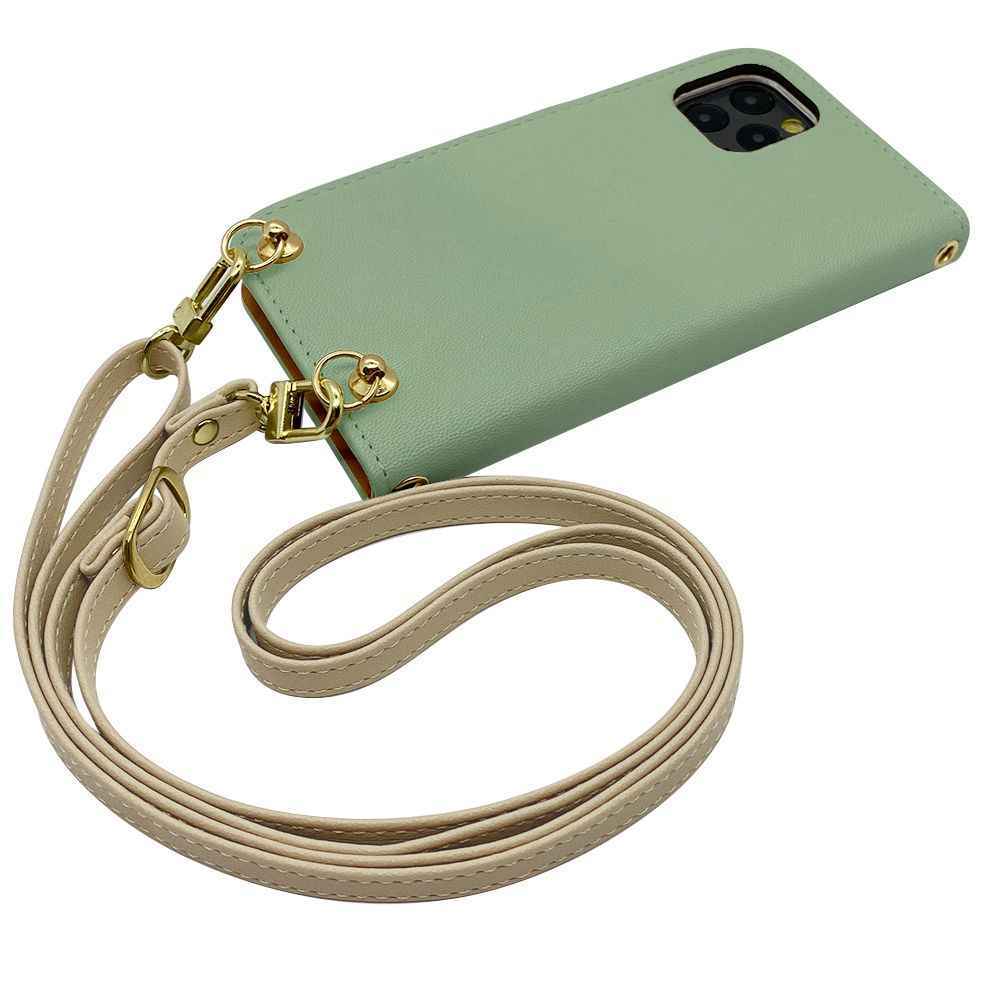 Galaxy A7 ギャラクシーa7 スマホショルダー(手帳アッシュグリーン×ストラップ:クリーム)カバー 手帳 くすみカラー