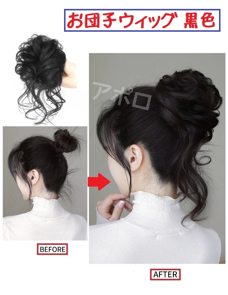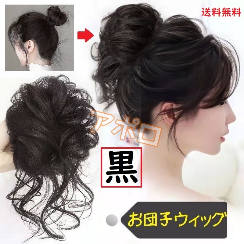 送料込み お団子ウィッグ 黒色 ブラック 黒 ヘアアクセサリー つけ毛 No.901 B