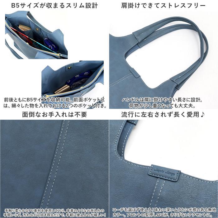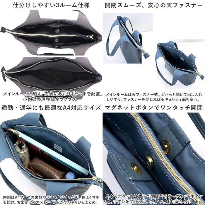 ・内側はA4サイズの書類やテキストがすっぽり。程よくマチを設け、お出かけのマストアイテムがすっきりひとまとめ。