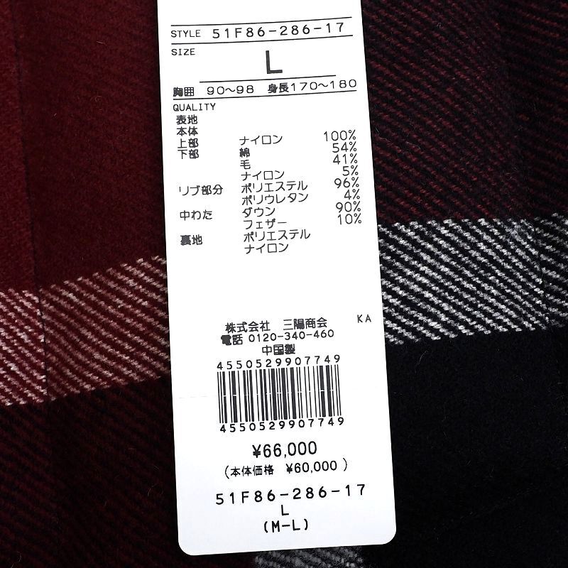 C05221 新品 BLACK LABEL CRESTBRIDGE/ダウンベスト【サイズ:L】ブラック/レッド 2WAY ツイード ブラックレーベル クレストブリッジ