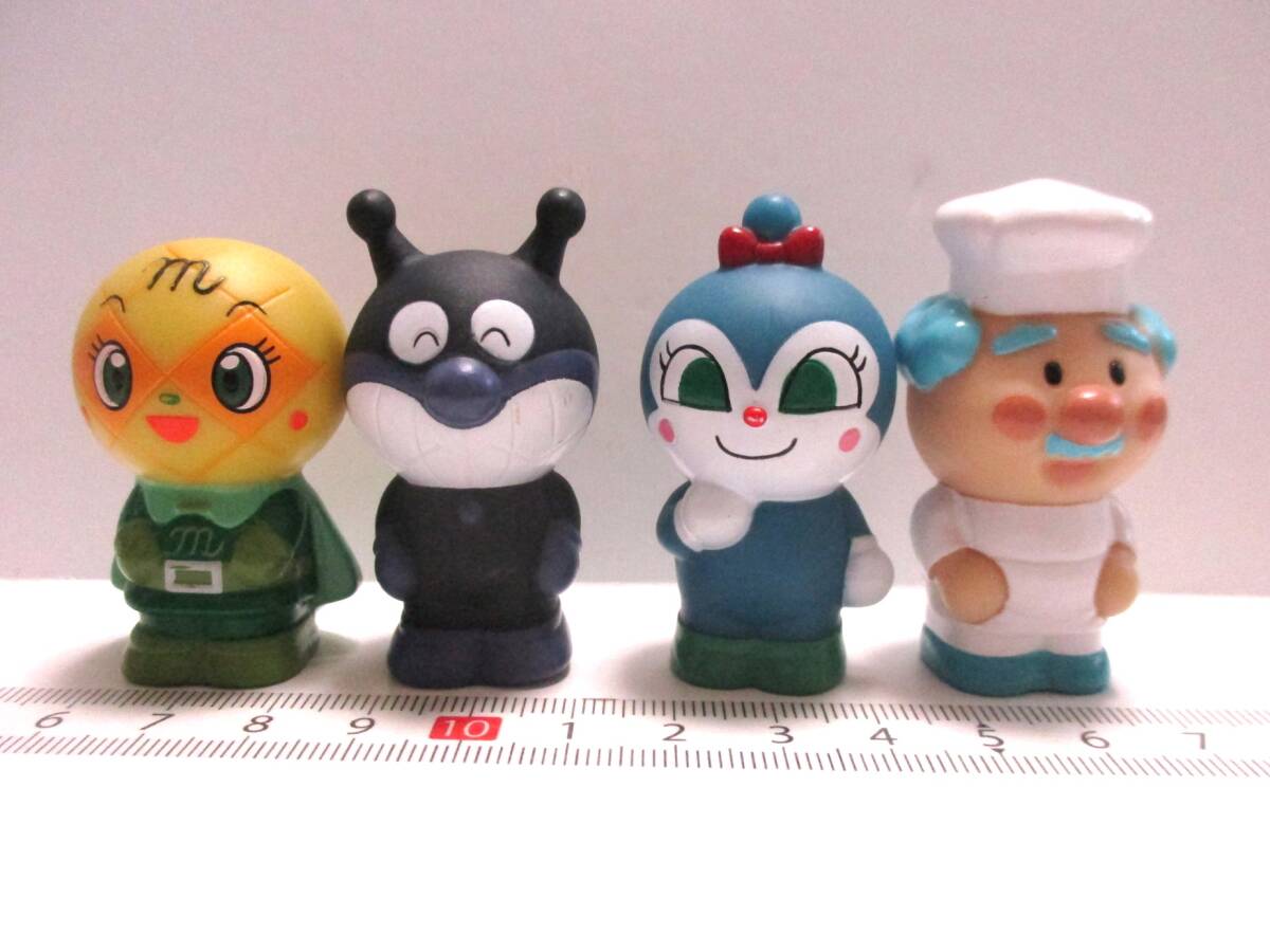 ・アンパンマン 指人形サイズフィギュア 4個セット ばいきんまんコキンちゃんジャムおじさんメロンパンナちゃんになります。大きな難はありませんが子供が遊んだものですので擦れや塗装がれなど使用感がございますがご了承ください。