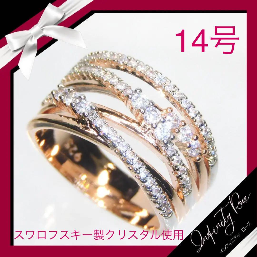 (1124)14号 ピンクゴールド 女の子の為のランダムクリスタル 太リング 指輪 スワロフスキー製クリスタル使用