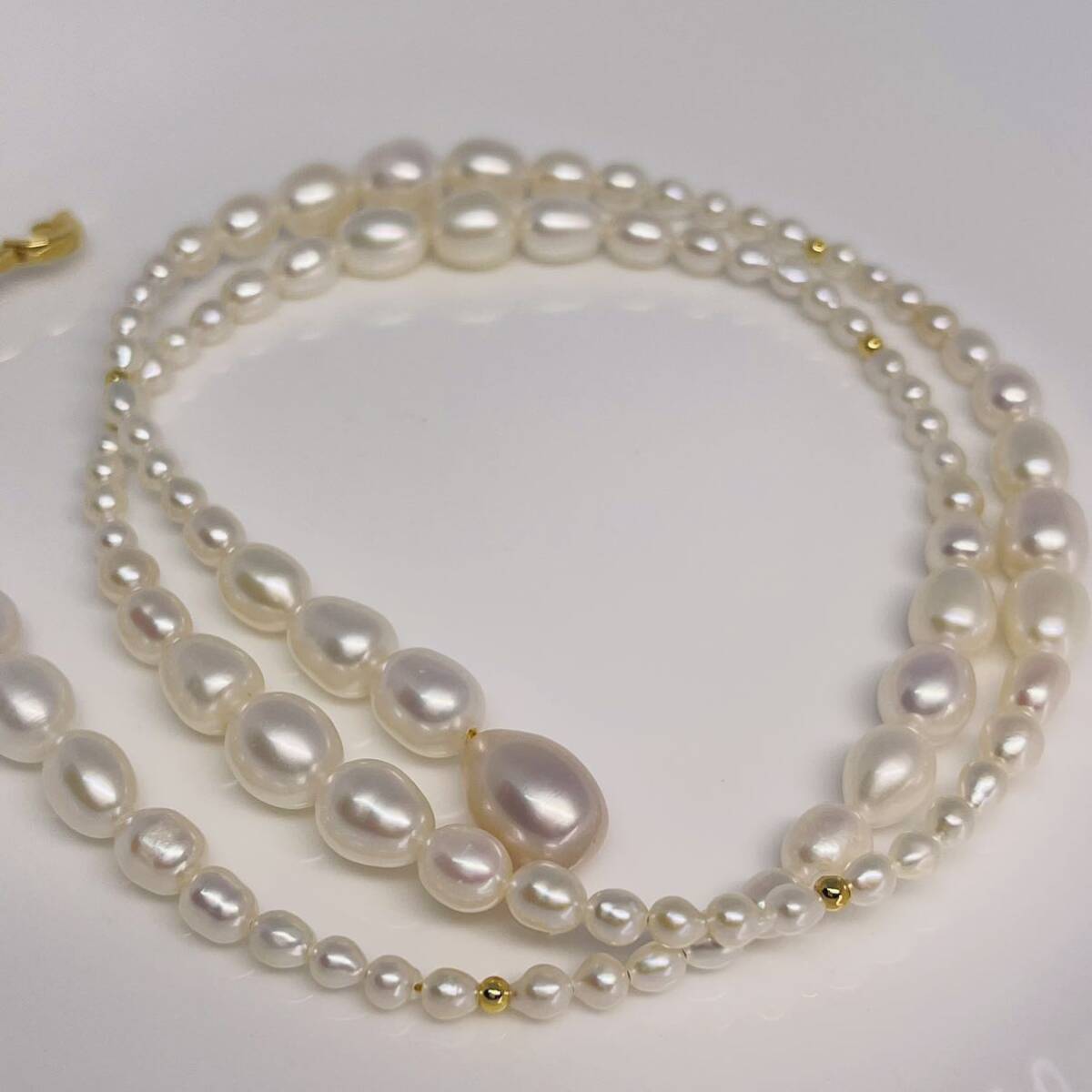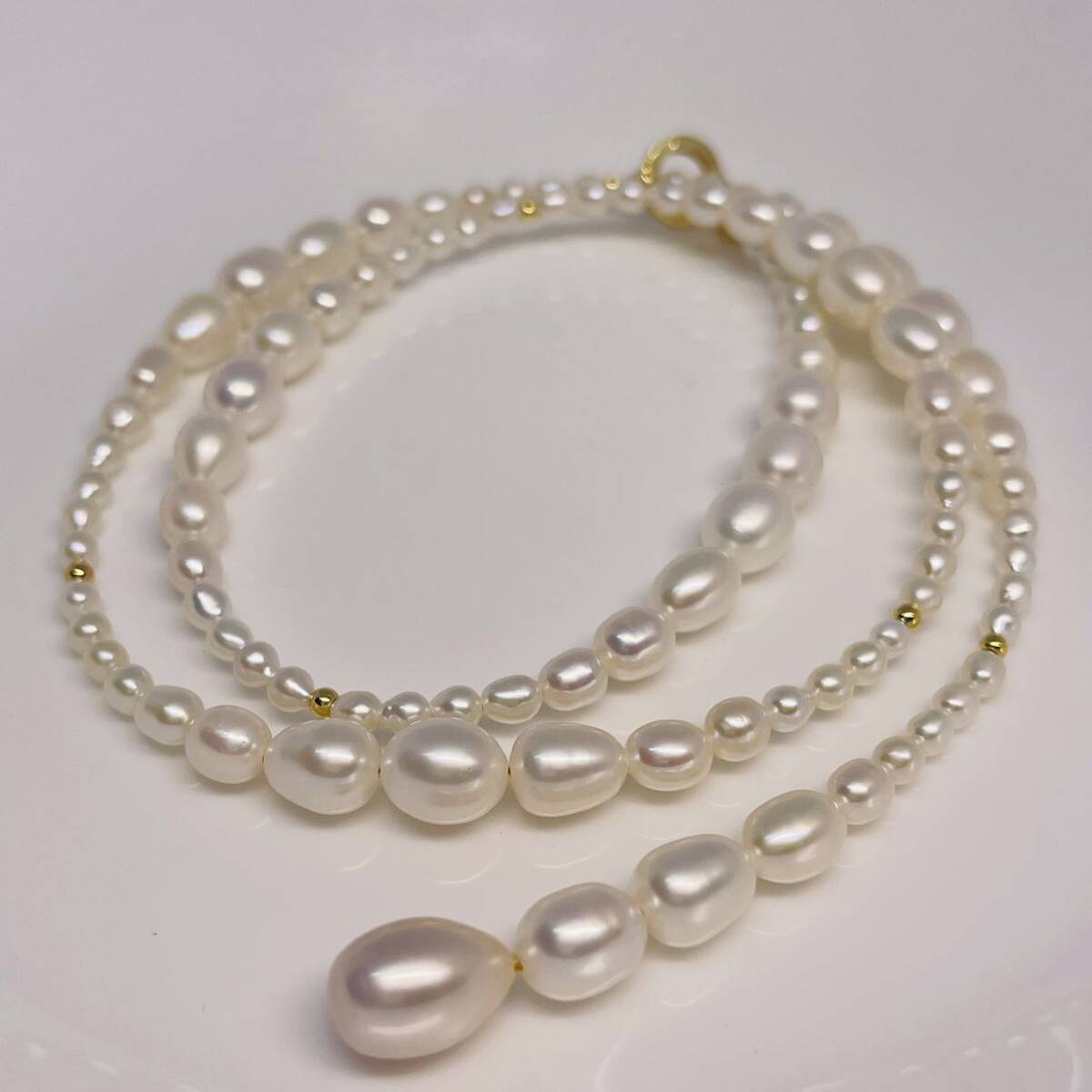 一般的には無核のものが多いですが、最近は養殖技術の向上で、有核真珠で、一見あこや真珠や南洋真珠と見まがうほどの真円で大粒のものもあります。