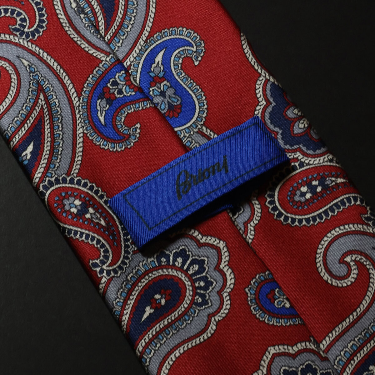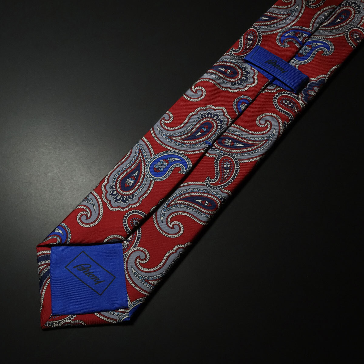 Brioniブリオーニ イタリア製 最高級ネクタイ 最高級のシルクを使用、どんなスーツにも合わせやすいリュクス感ある一本です。 ブリオーニのネクタイは、生地にコシがあってノット・ディンプルがキレイにきまると定評があります。 <ブリオーニ> 1945年、イタリアのローマで創業した紳士服ブランドです。 最高級の素材を使い、職人のハンドワークにこだわったもので、 アメリカの政界や金融界、映画007で使用されるなど、名だたるハリウッド俳優たちから強い支持を受け、 イタリアのエレガンスを追求しています。 ラグジュアリー・インスティテュート社の富裕層を対象としたブランドステータス調査で、堂々1位を獲得しています。 ブリオーニにしてはめずらしく、生地にロゴが入っています。 ご着用最適シーズン:オールシーズン カラー:レッド ペイズリー プリント柄 サイズ:剣先幅8㎝ 素材:シルク100% 定価:33,000円 付属品:ブリオーニギフトボックス・ショッパー |