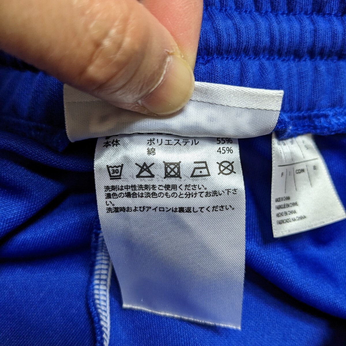 鮮やかなブルーのジャージのパンツです。
