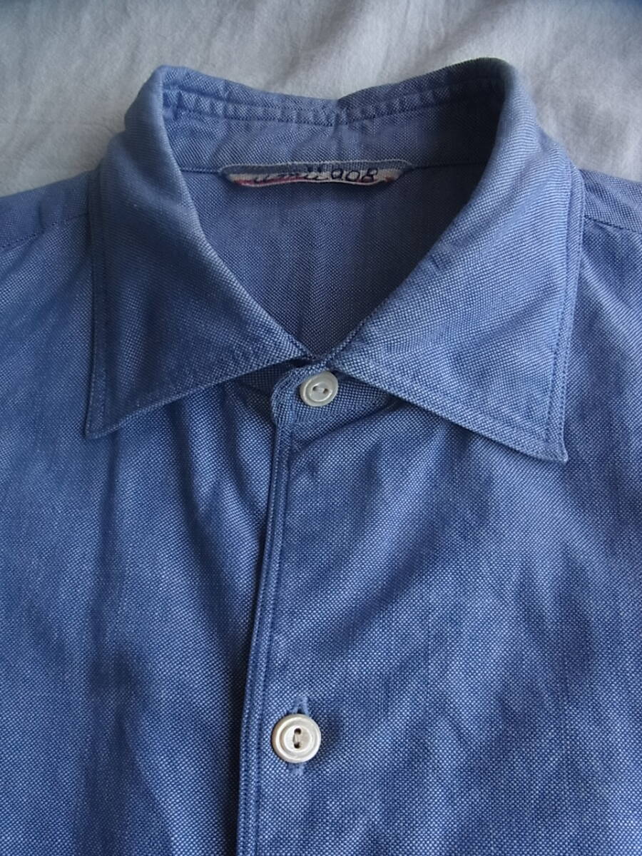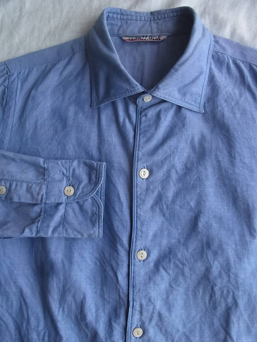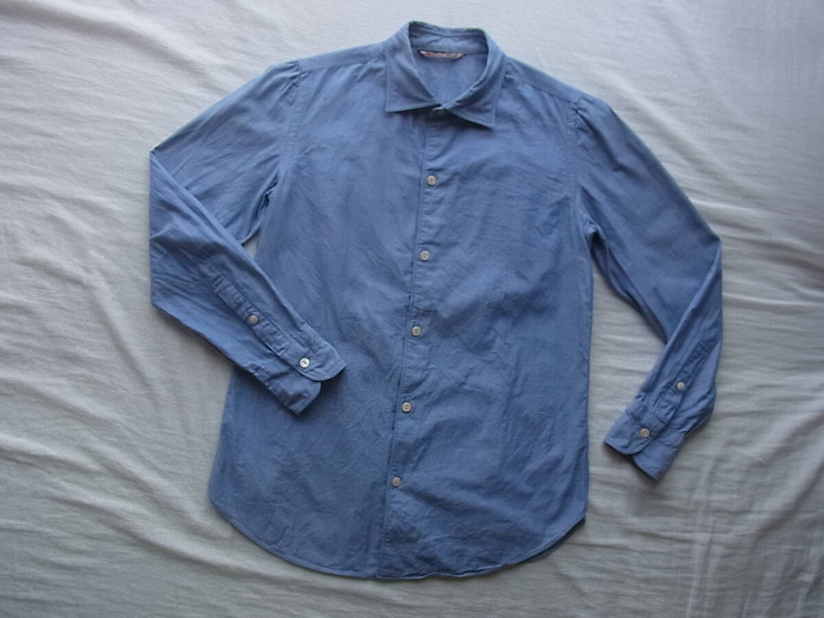 45rpm  umii908  フォーティーファイブ  ウミキューマルハチのコットンオックス素材でインディゴシャンブレーのシャツになります。USEDで着用感は御座いますが、特に目立ったダメージ等は御座いません。
