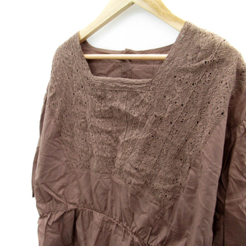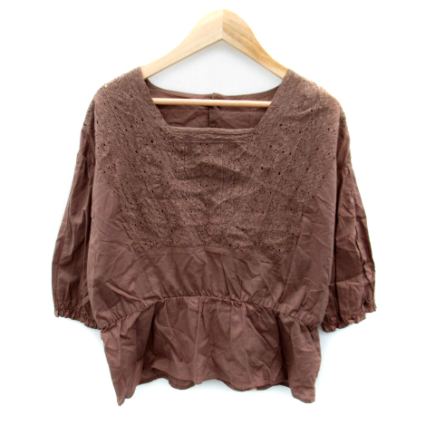 エヘカソポ サマンサモスモス ehka sopo SM2 ブラウス カットソー 七分袖 スクエアネック レース F ブラウン 茶 /SY11 レディース