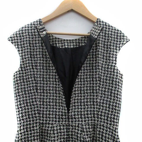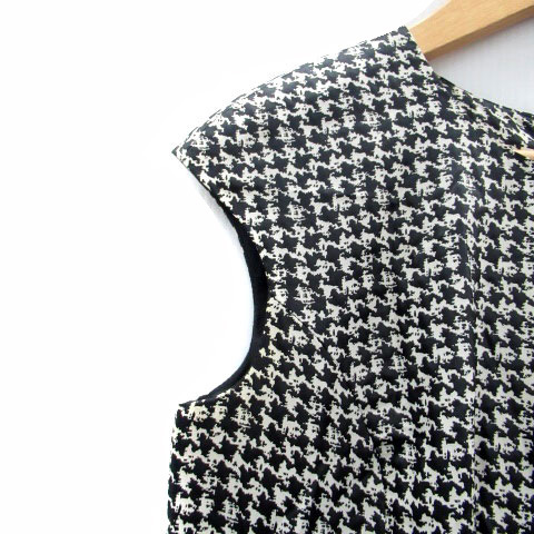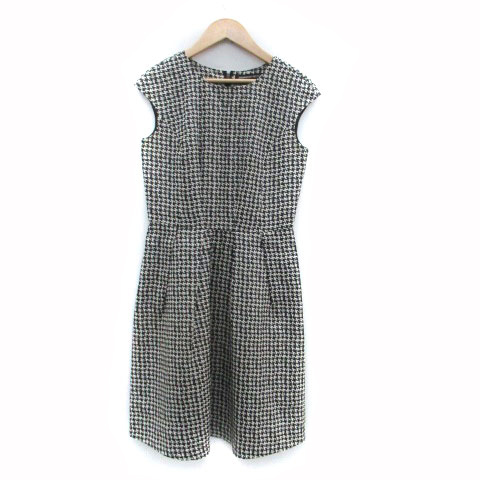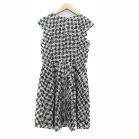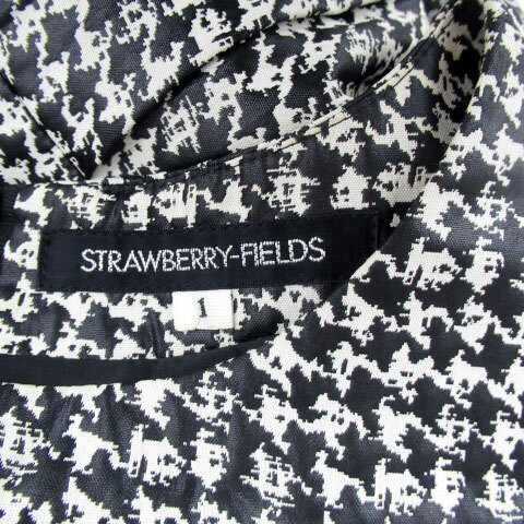 ストロベリーフィールズ ワンピース ラウンドネック フレンチスリーブ ひざ丈 総柄 1 オフホワイト 黒 ブラック /HO レディース