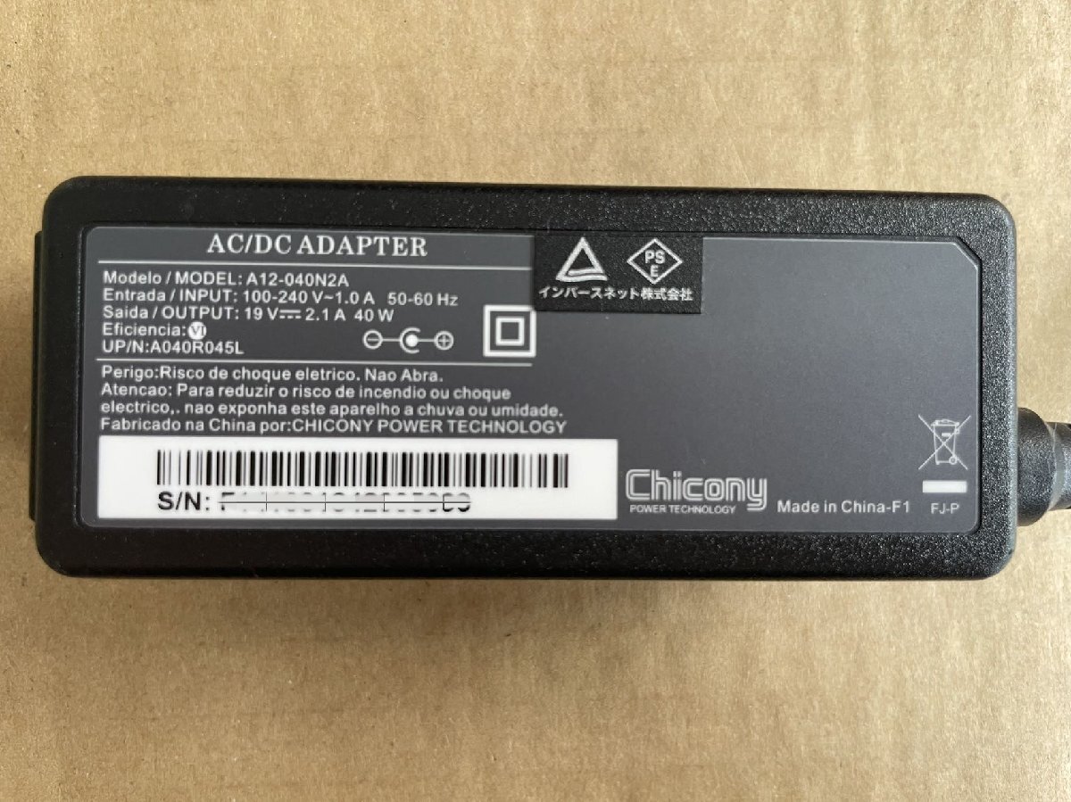 通電確認済です。 Input:AC100V~240V,1.0A (50-60Hz) Output:19V 2.1A。 |