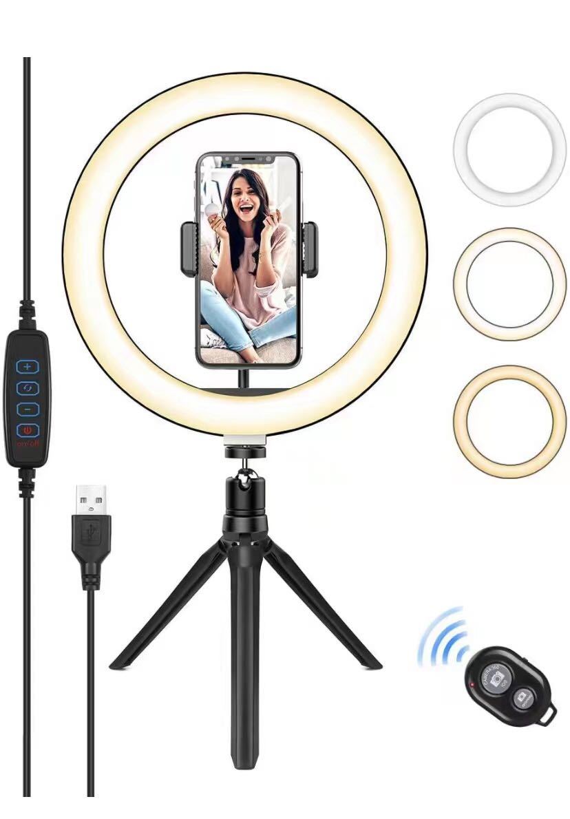 LEDリングライト 自撮り 撮影照明用 ライト 10インチ 3色モード 調光